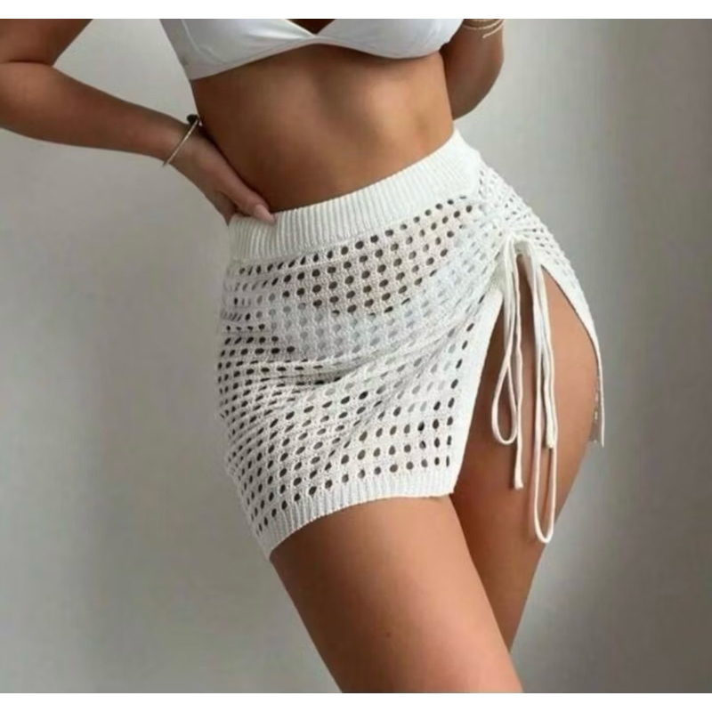 kit 3 peças saída de praia + biquíni asa delta feminino conjunto praia saia saida tricot vazada verao piscina ferias