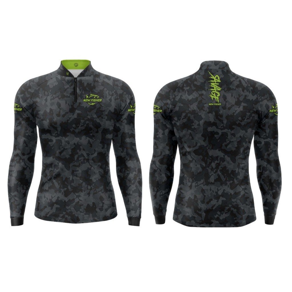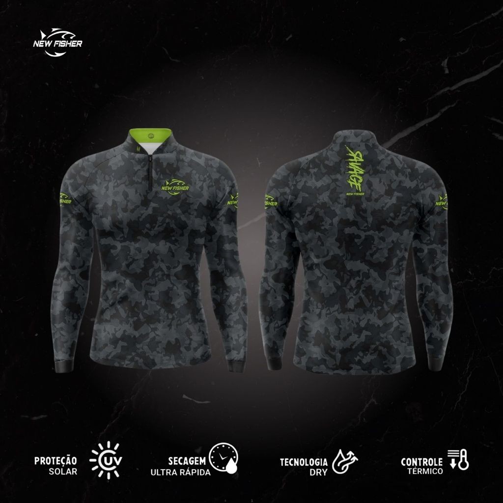 Camisa Camiseta de Pesca Camuflada Savage Gola Zíper Proteção Solar UV New Fisher