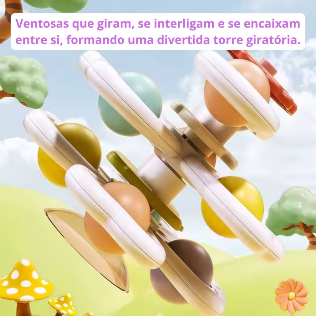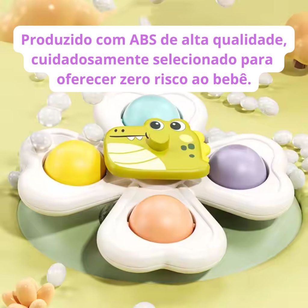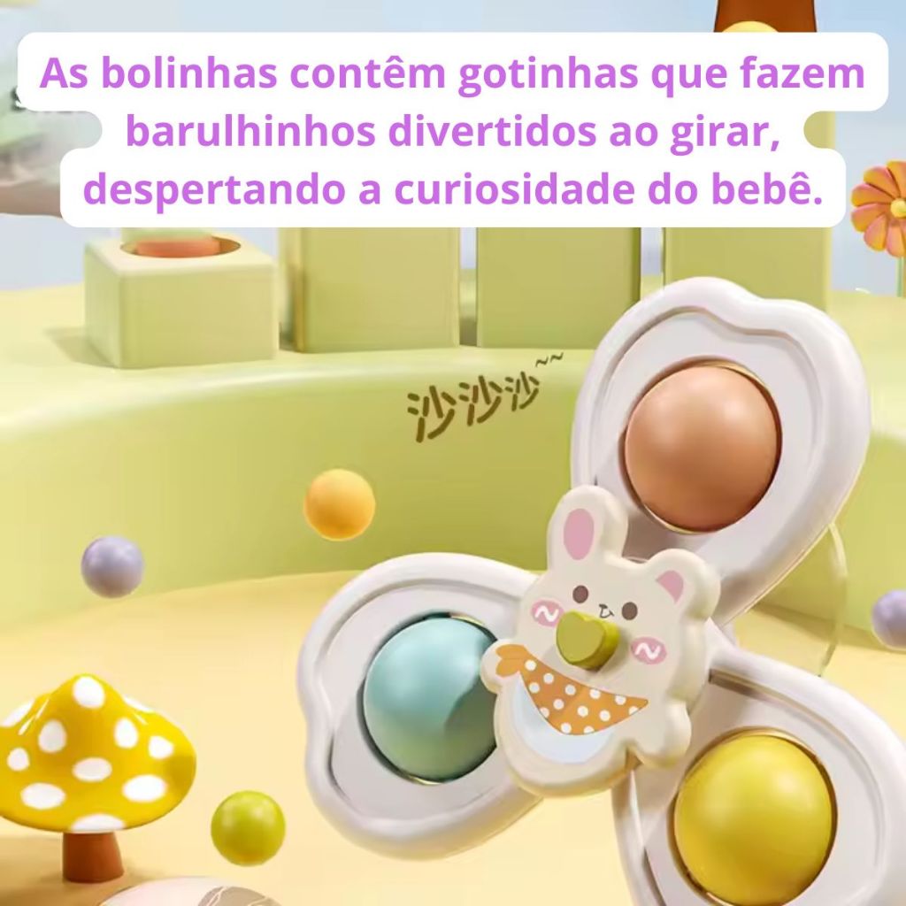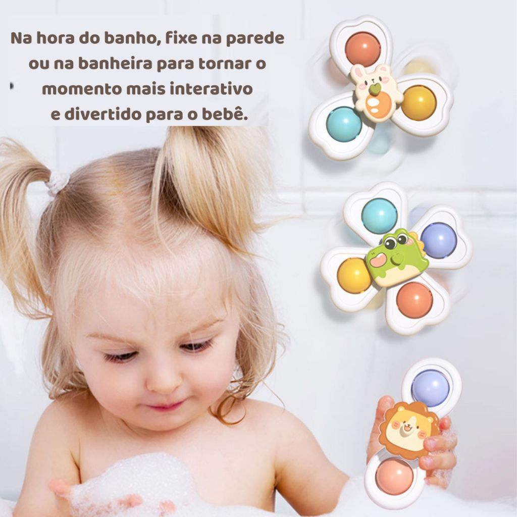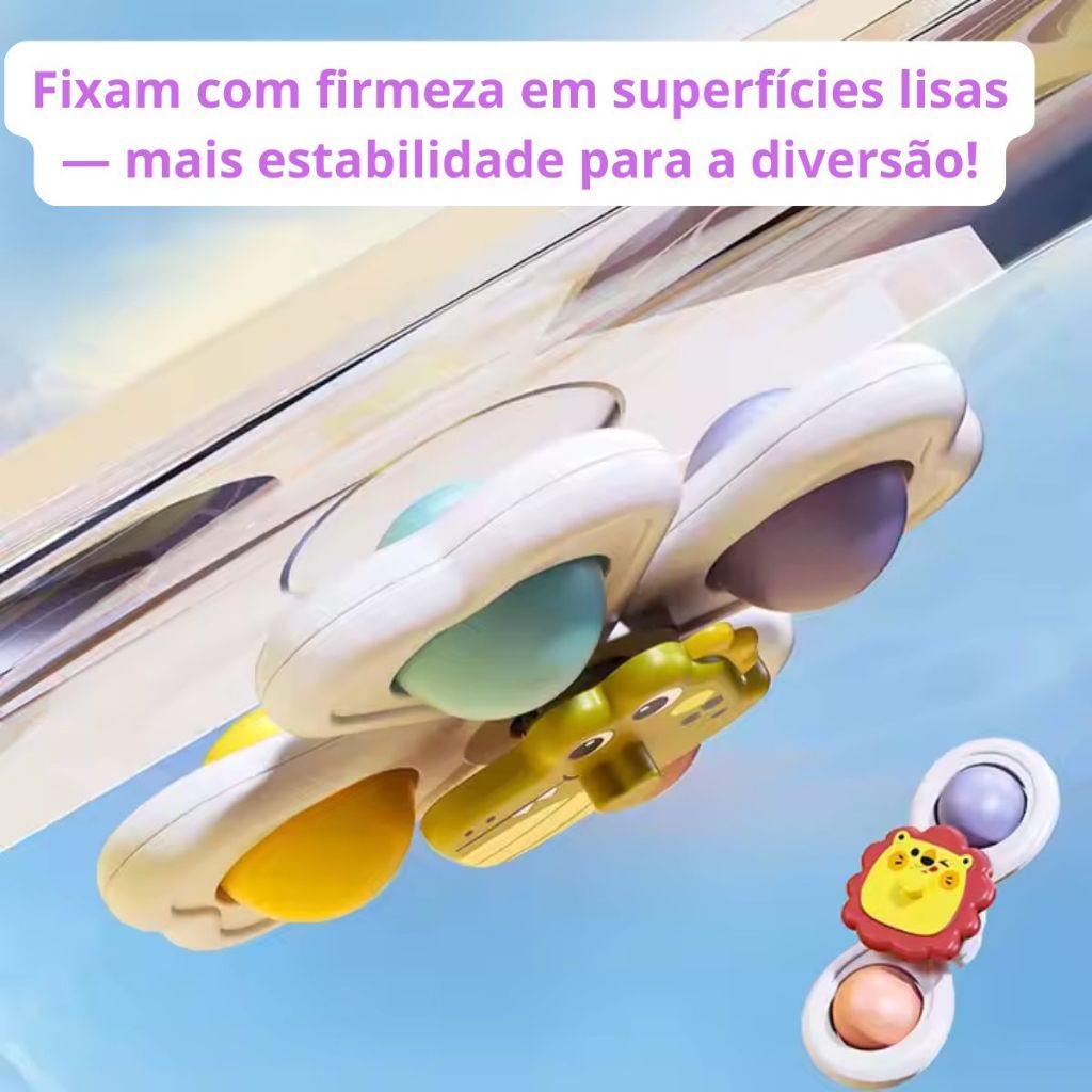 Brinquedo Sensorial Giratório com Ventosa Kit 3 Spinners Bebê Dino, Coelho e Leão com e Chocalho