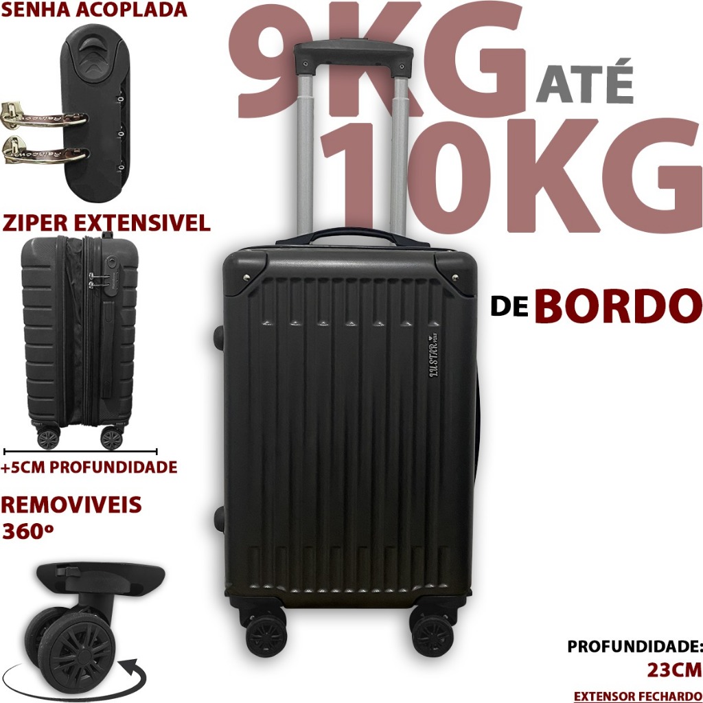 Mala De Bordo N18 Duplo Zíper ANAC 10 kilos Expansível Mala De Viagem 10Kg ABS Roda Dupla Com Senha