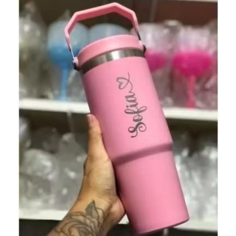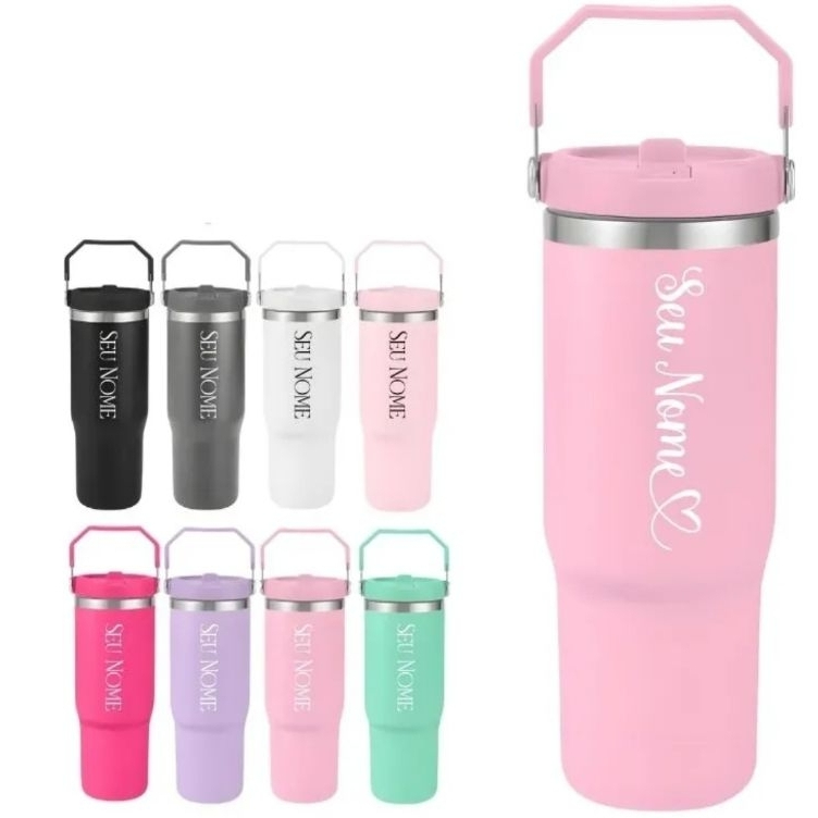 Garrafa Térmica Aço Inox C/ Alça Personalizada a Laser Nome Time Profissão Signo Logan Namorada amor
