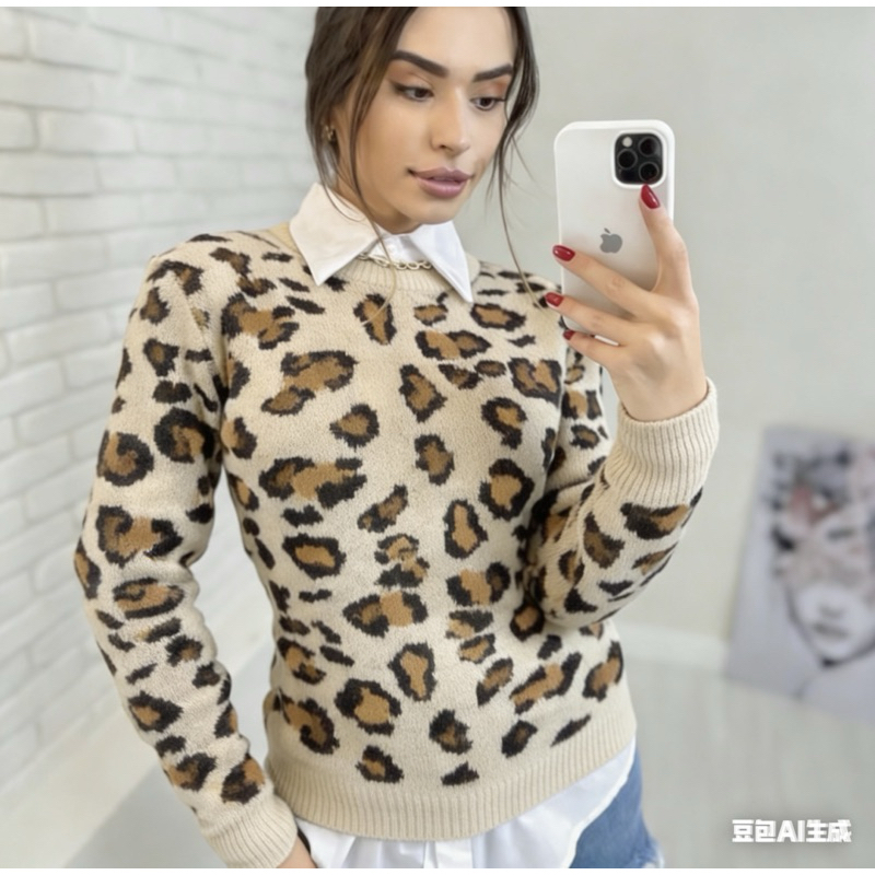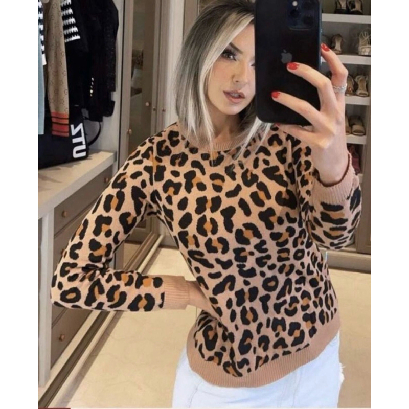 Blusa Feminina Tricô Onça Animal Print Xela Malhas Tricot