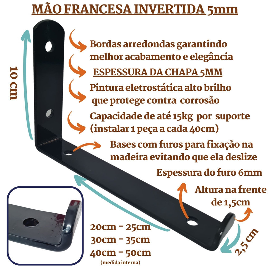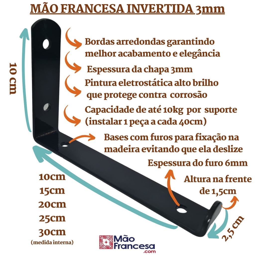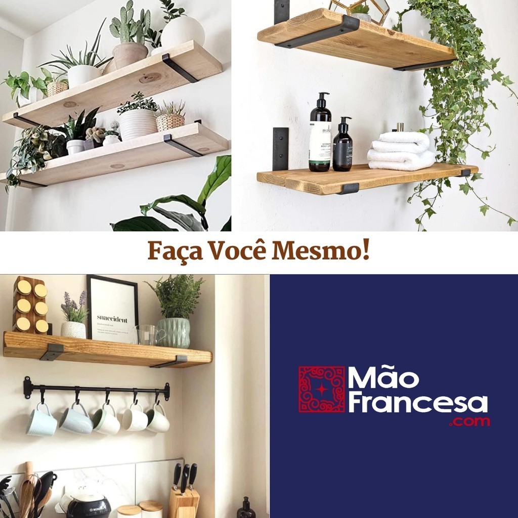 Mão Francesa Invertida 2 Peças Suporte Prateleira Industrial Cantoneira Gancho Parede Branca Preta