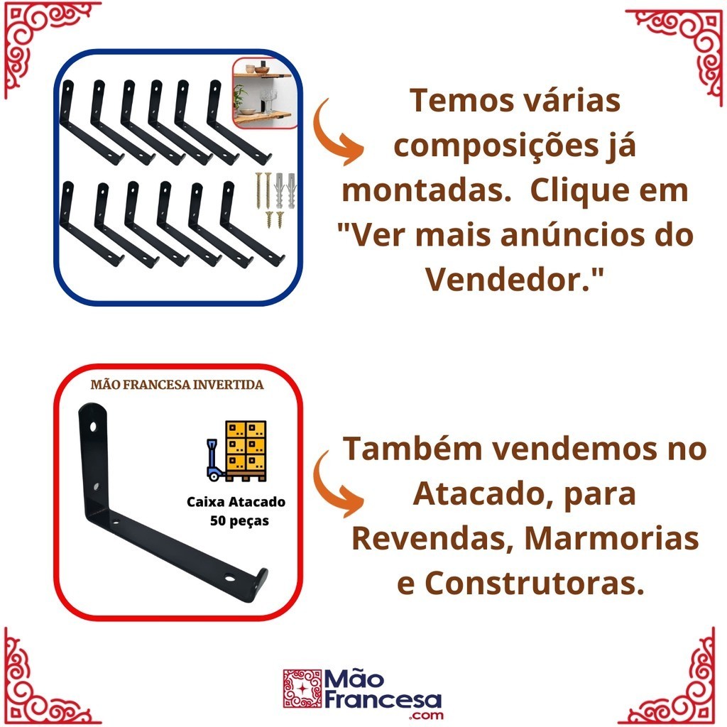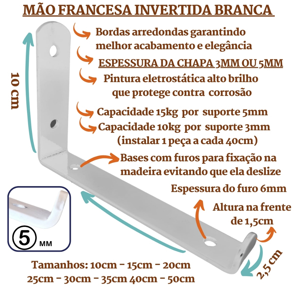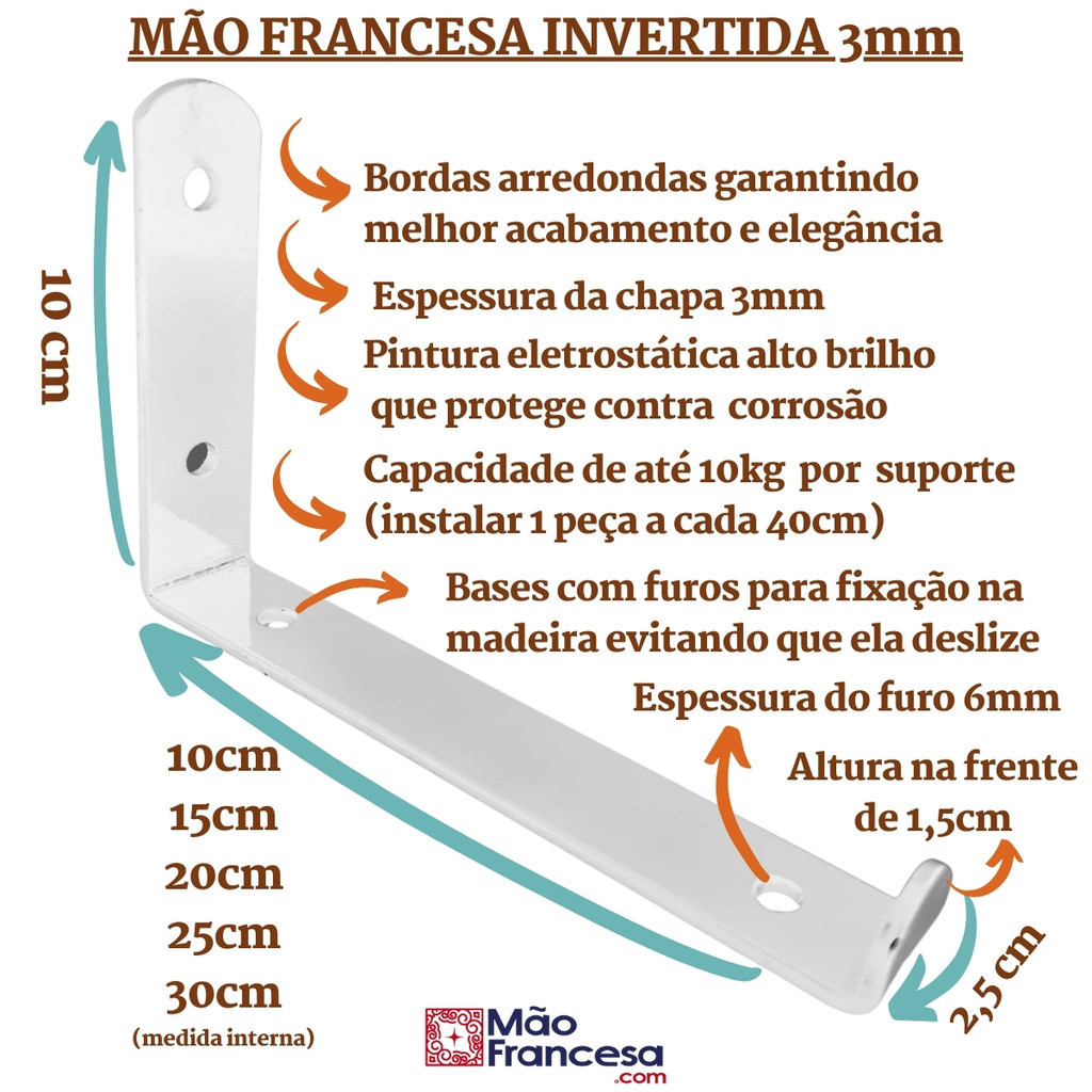 Mão Francesa Invertida 2 Peças Suporte Prateleira Industrial Cantoneira Gancho Parede Branca Preta