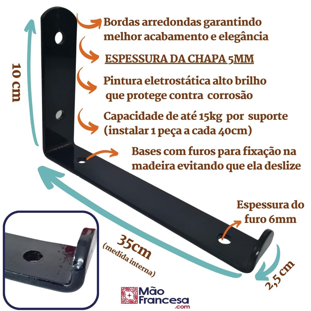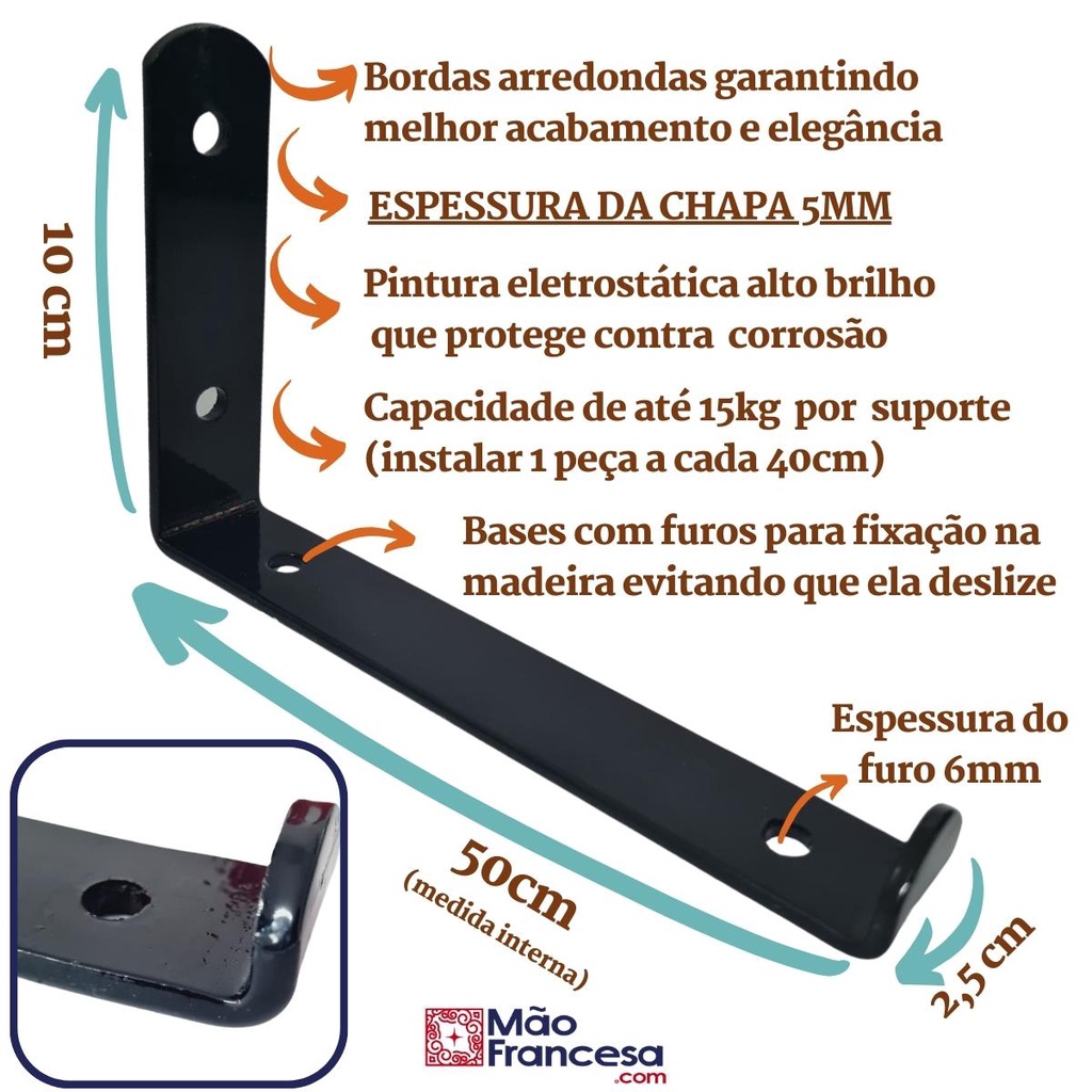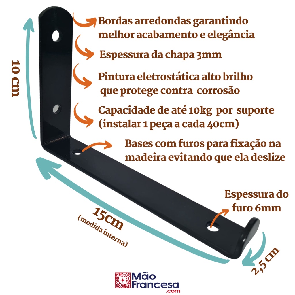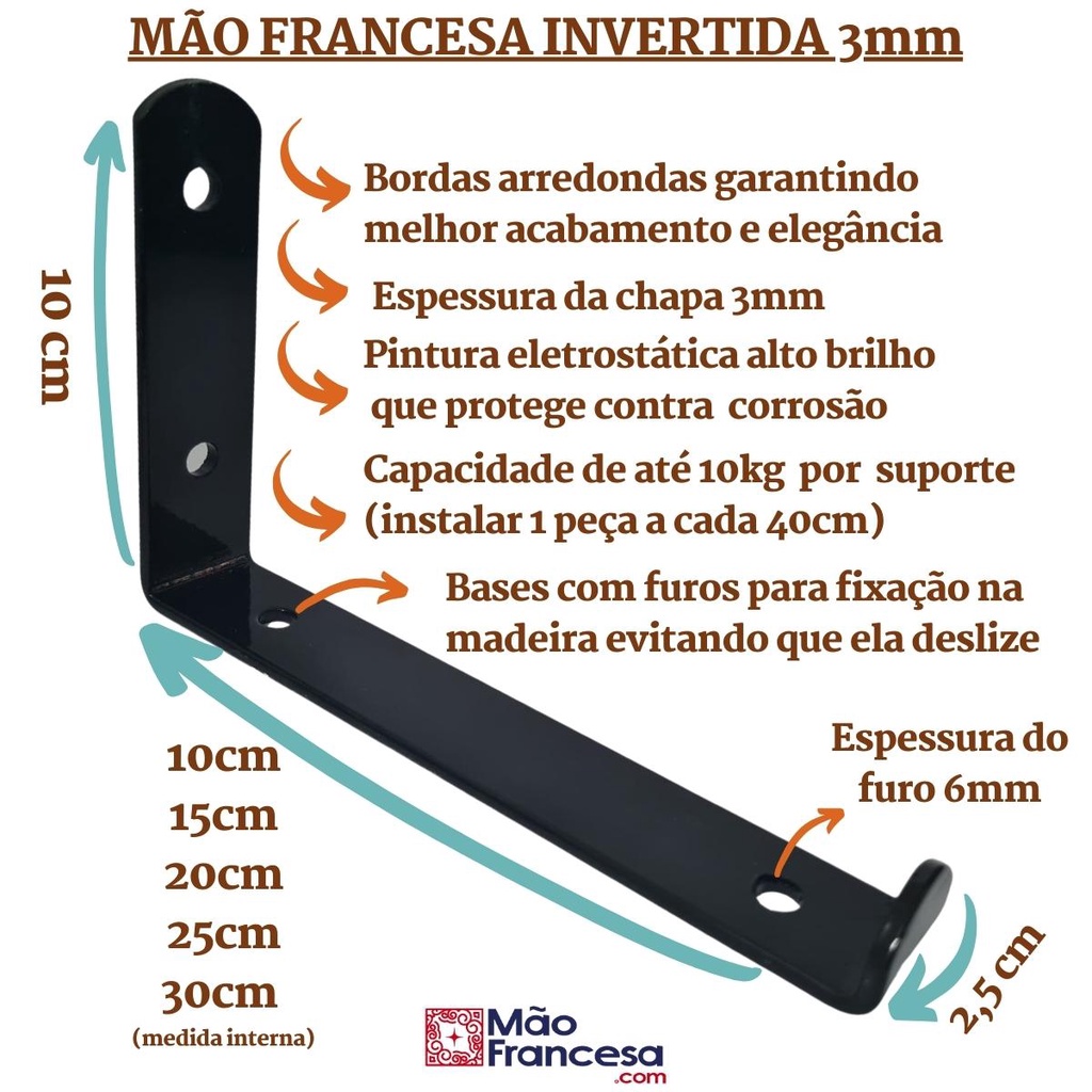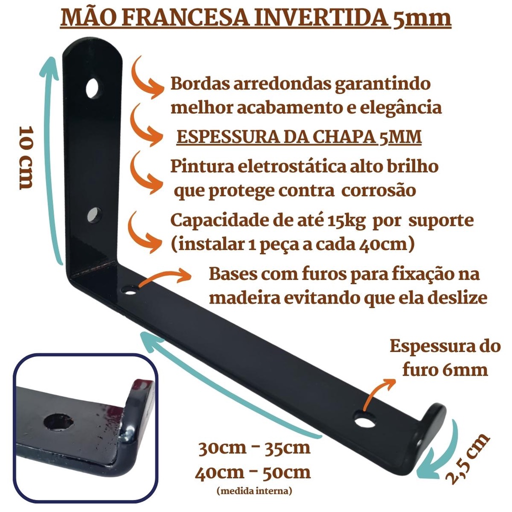 Mão Francesa Invertida 2 Peças Preta Prateleira Industrial Cantoneira Invisível Suporte Microondas com Parafusos para Instalação