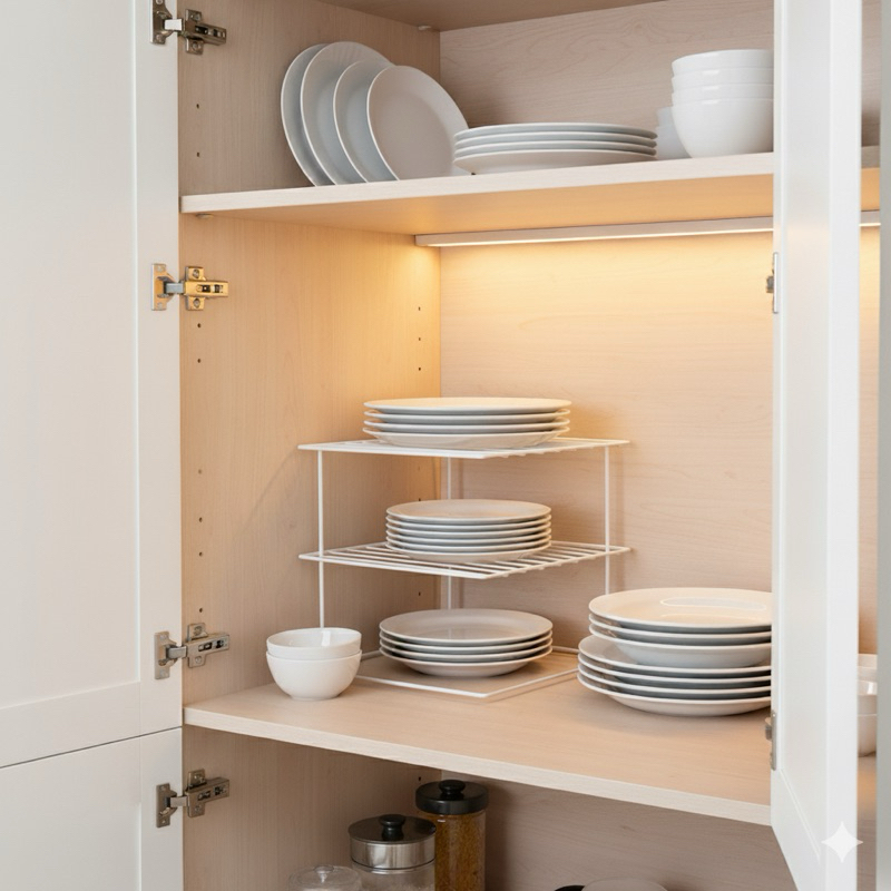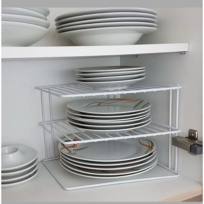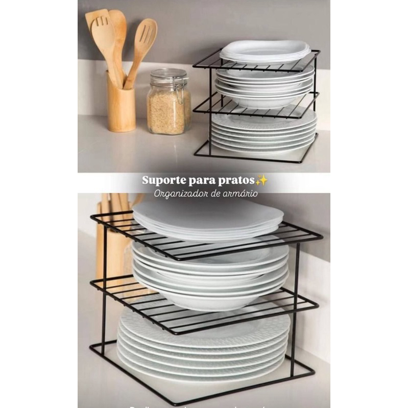 Organizador de Pratos divisor 3 Níveis Aramado Armário de cozinha Branco e preto