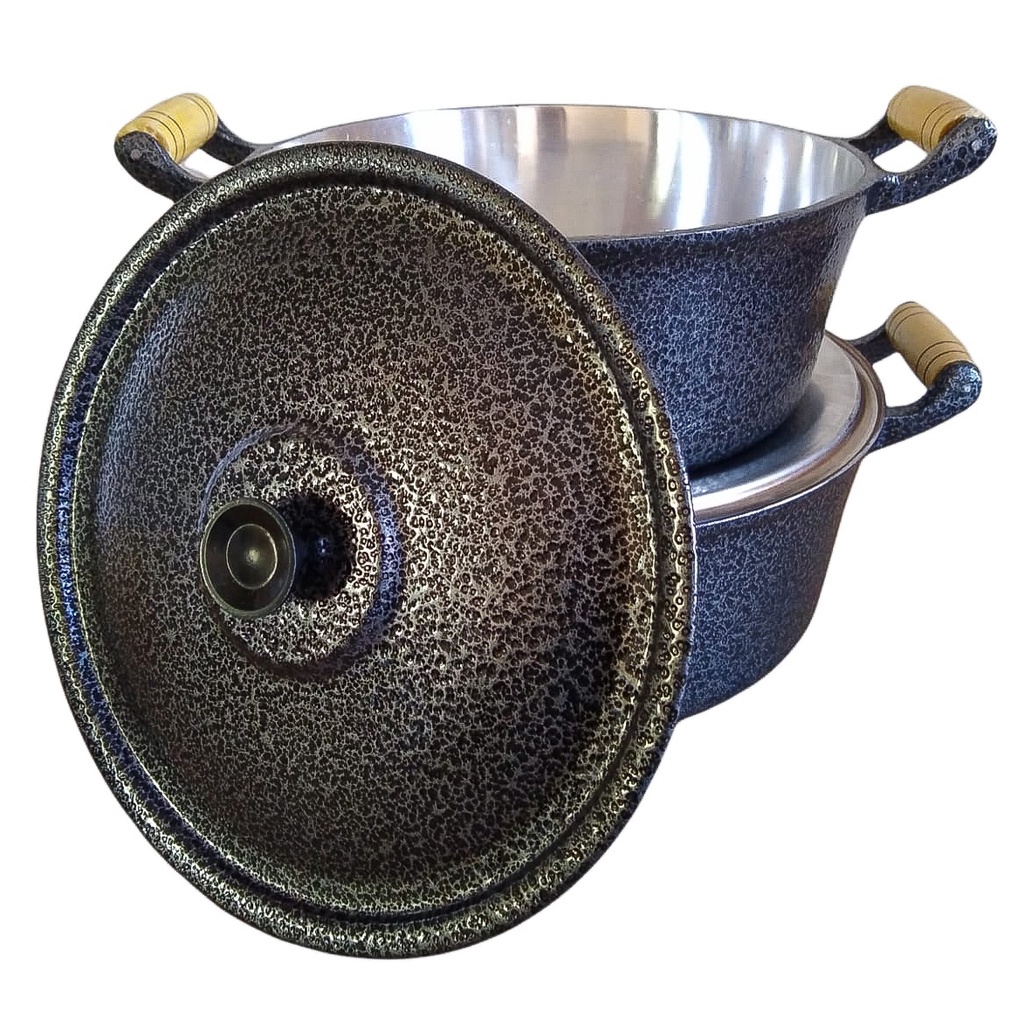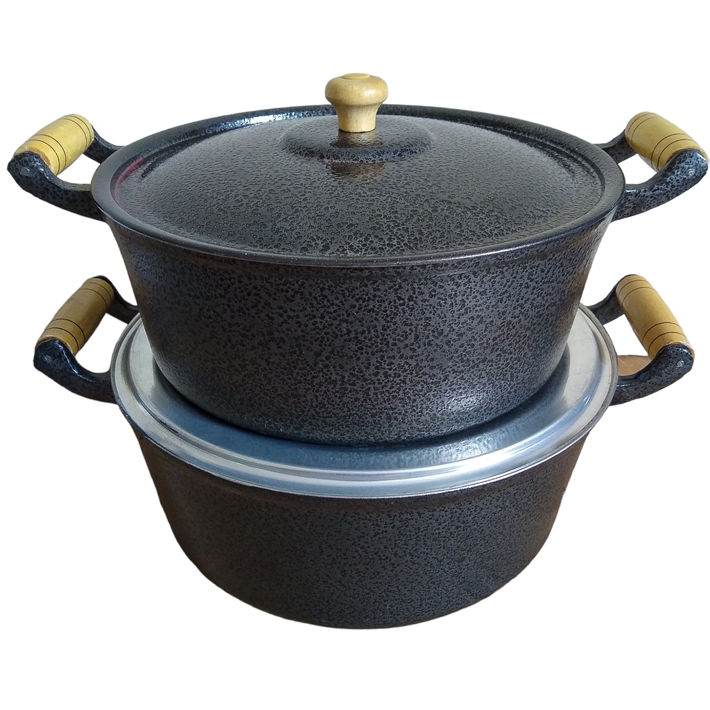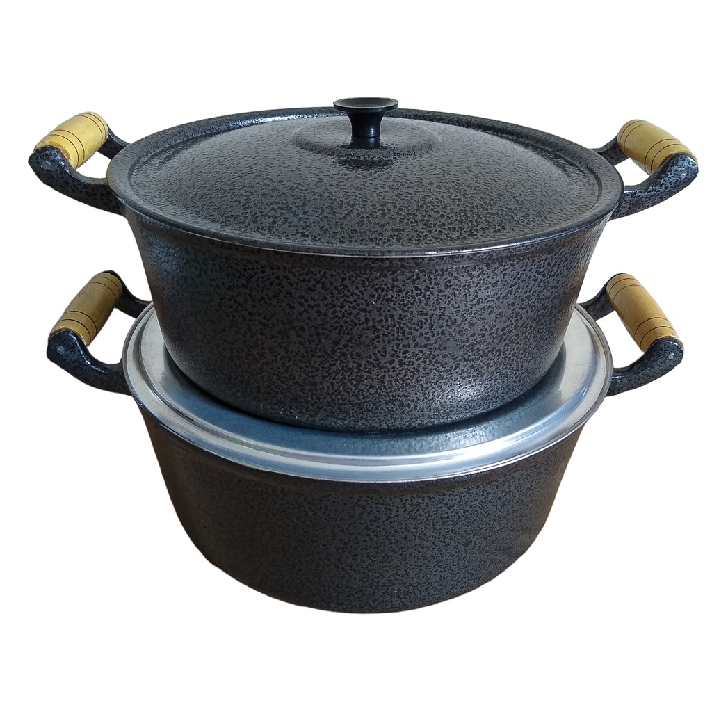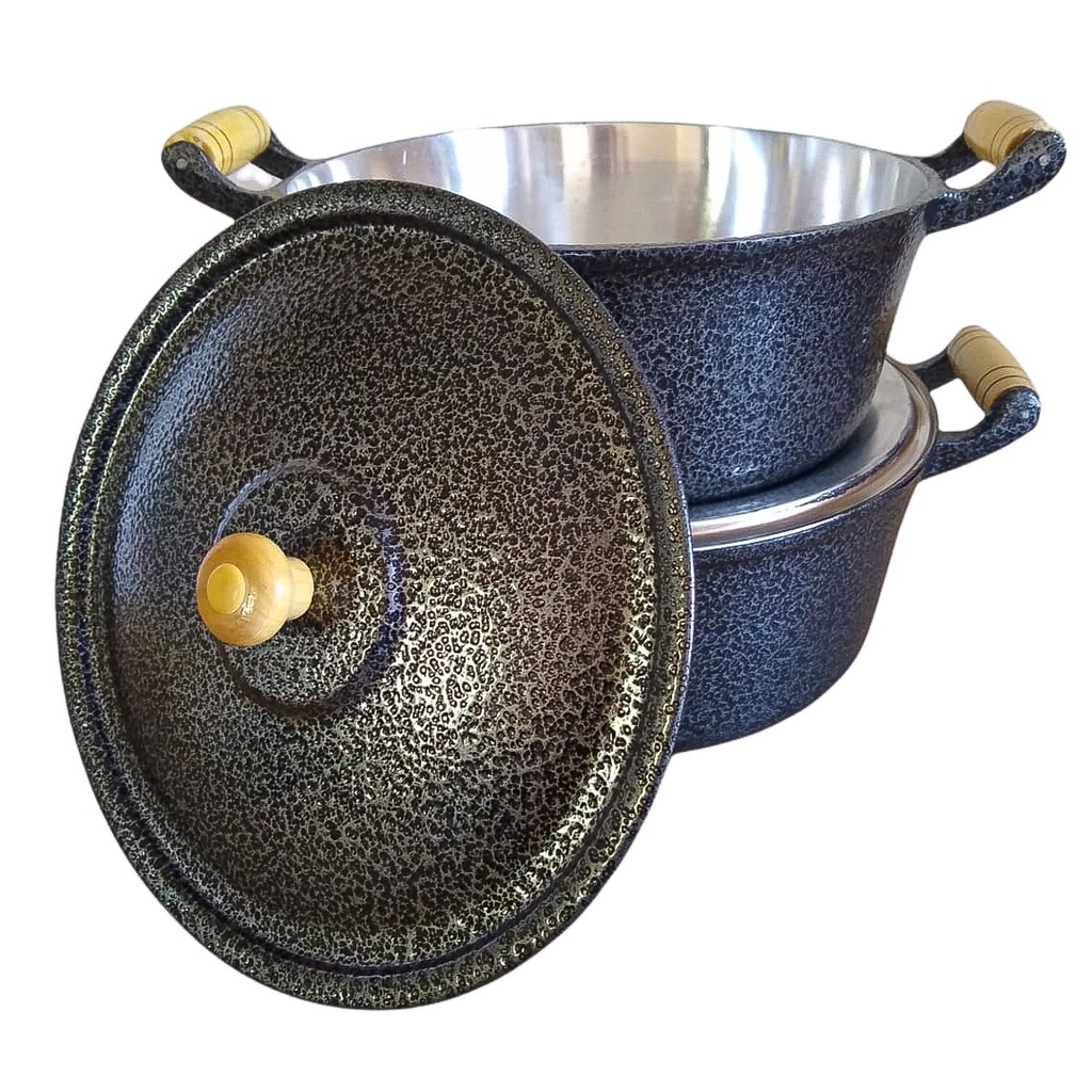 Jogo 2 Panelas Grandes Pretas Alumínio Fundido Batido Grosso 26 e 28