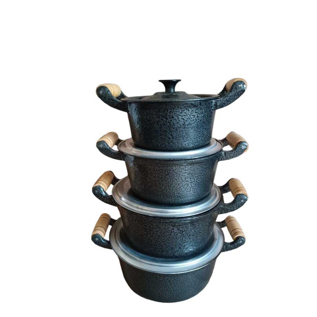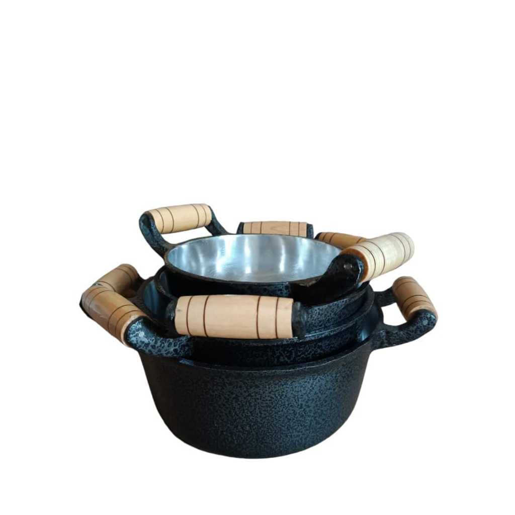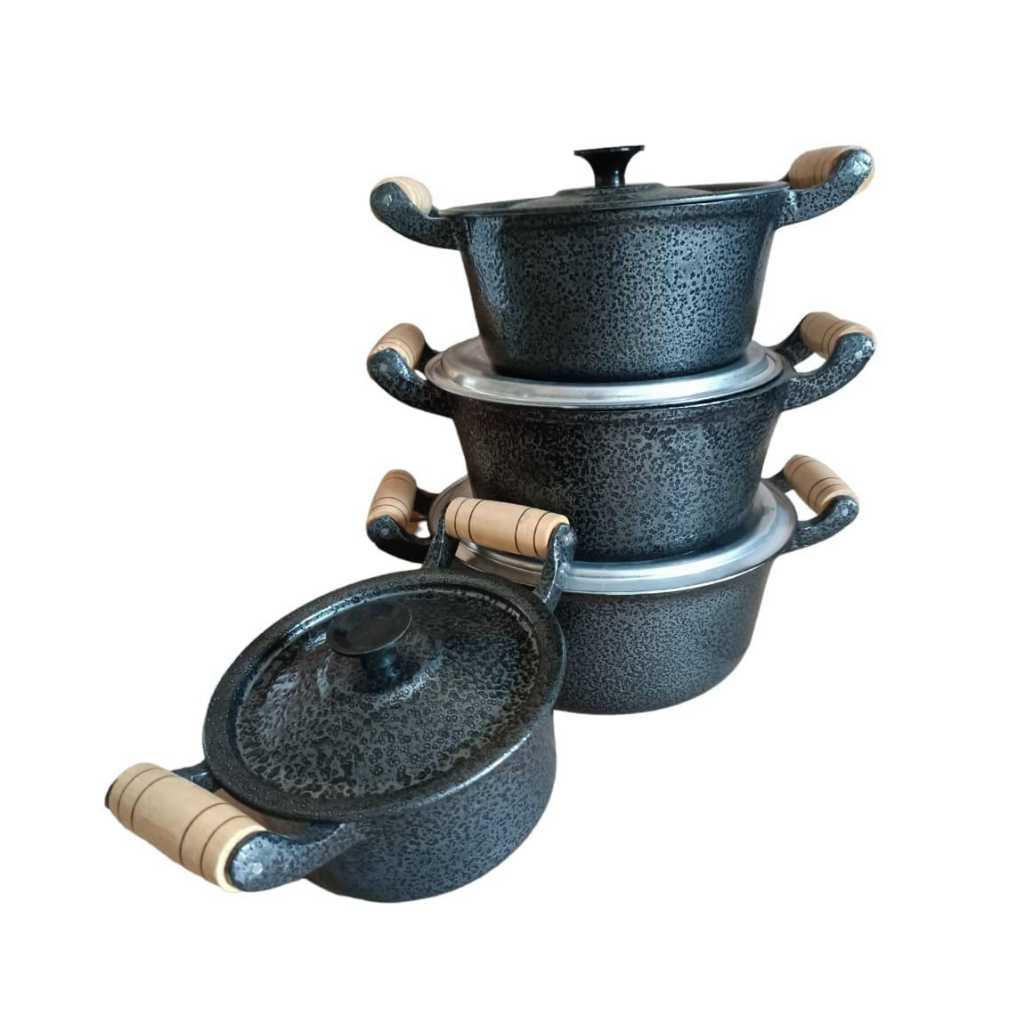 Jogo com 4 Panelas Pretas Alumínio Fundido Batido Grosso 14 à 20.