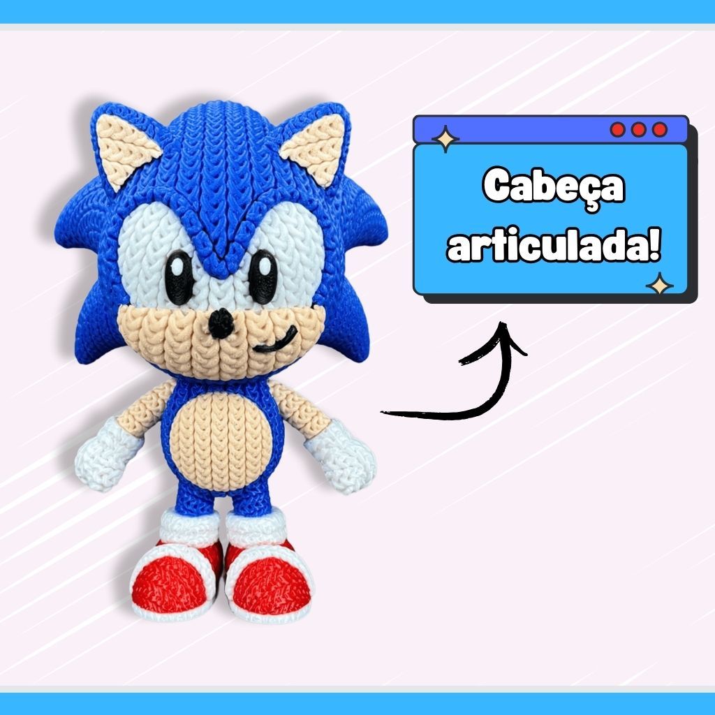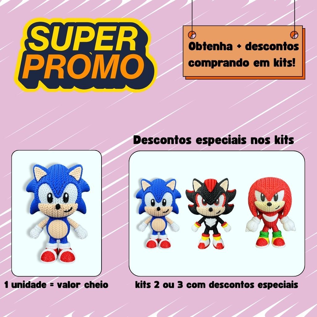 Boneco do Sonic e turma tipo amigurumi