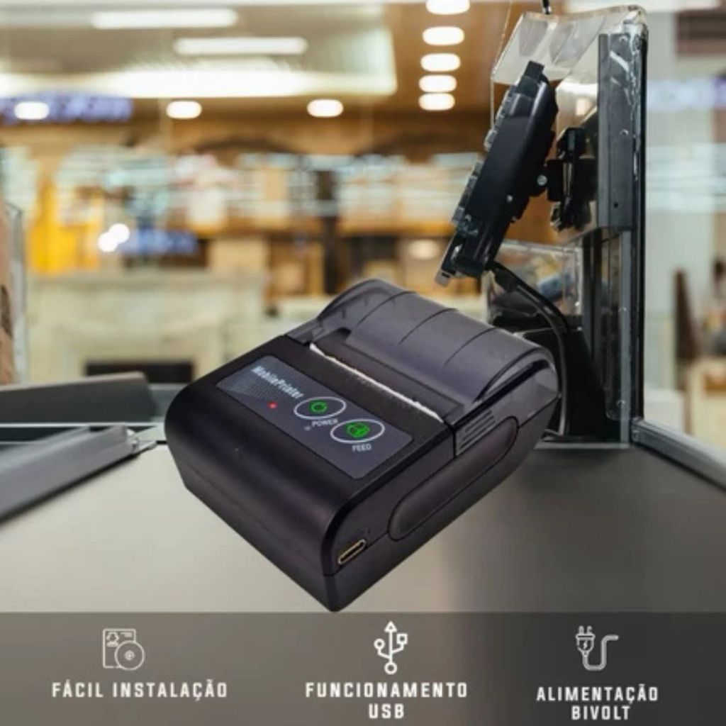 Mini Impressora Via Bluetooth Portátil Térmica 58mm Compatível Com Androide e IOS