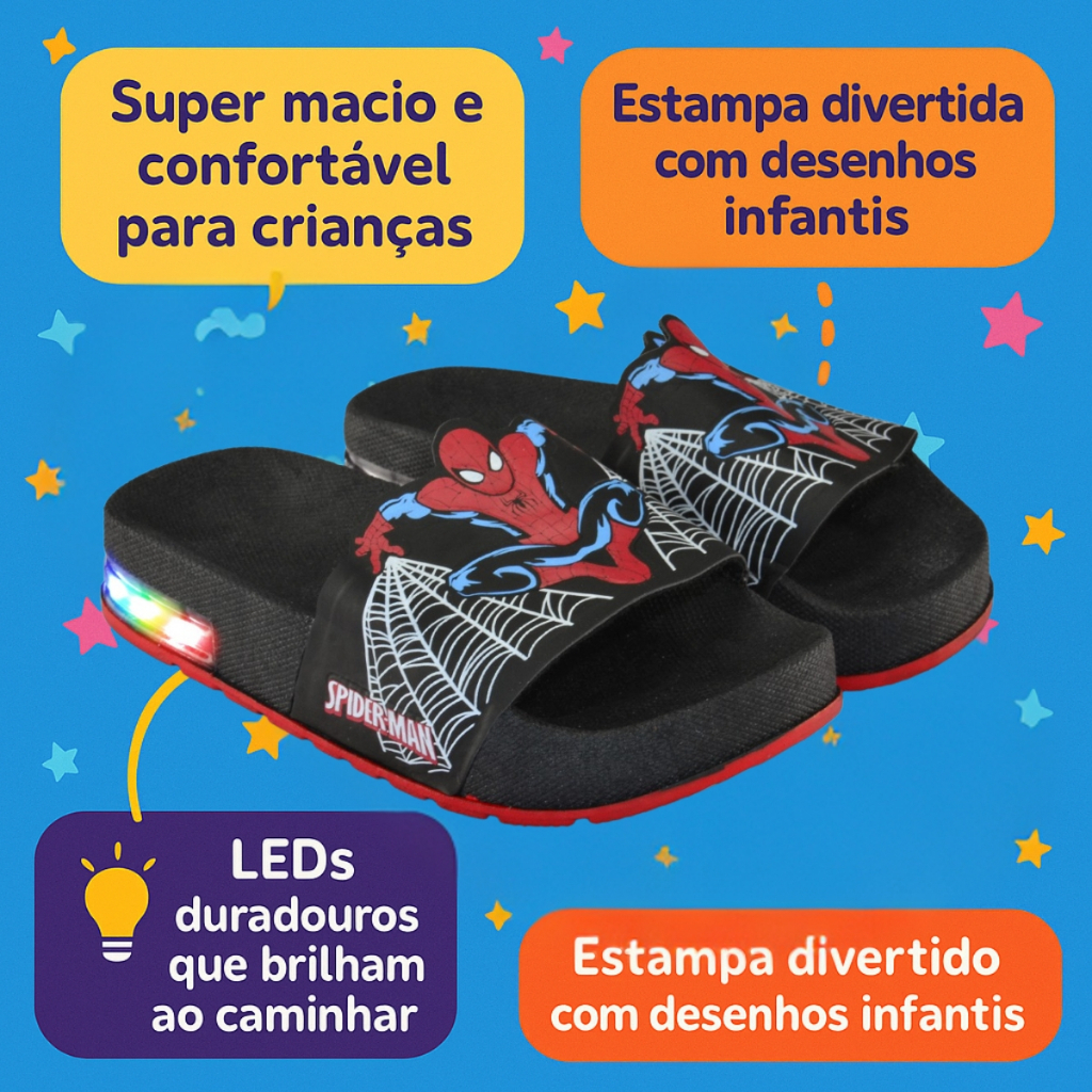 Chinelo Infantil Sonic com LED – Slide Leve e Confortável para Crianças | Envio Imediato
