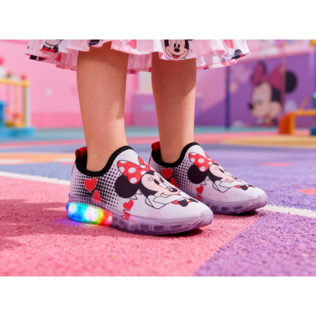 Tênis LED Infantil Minnie – Calce Fácil, Confortável e Super Brilhante!