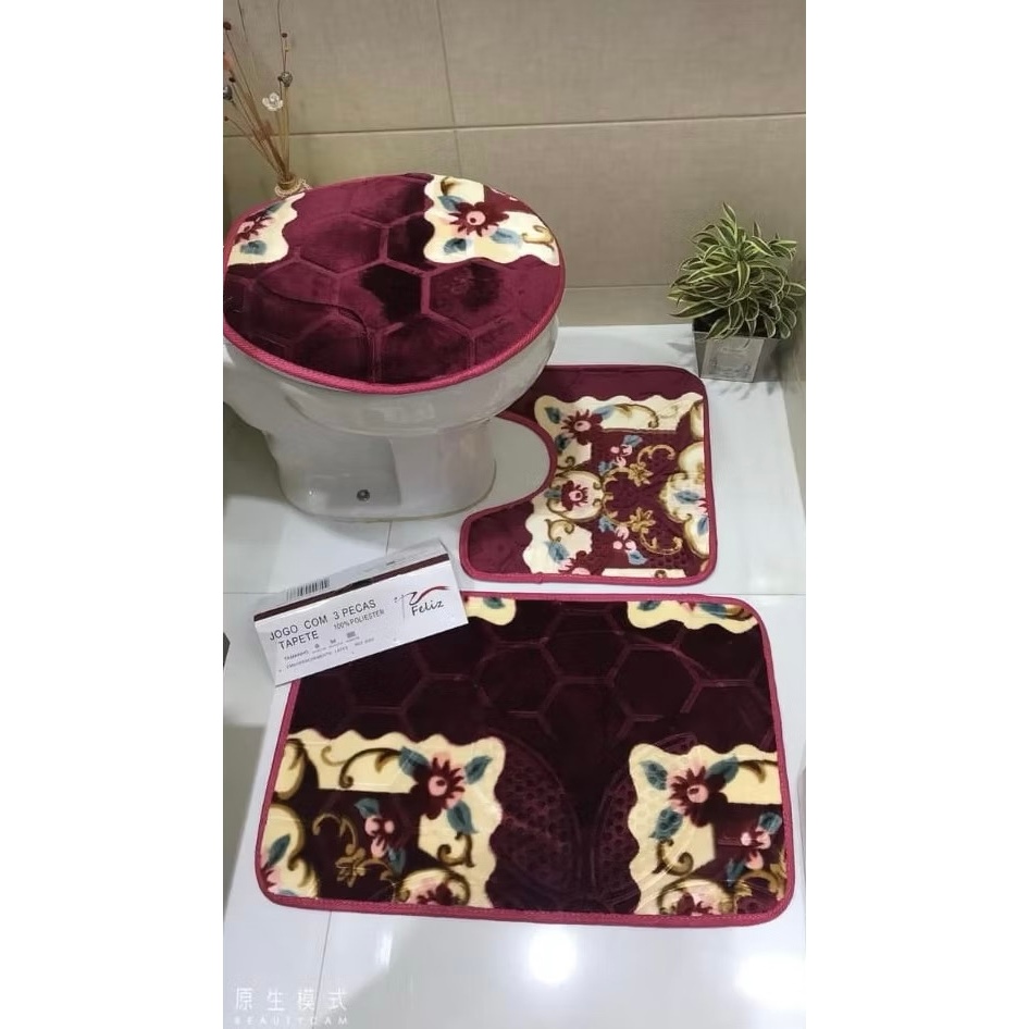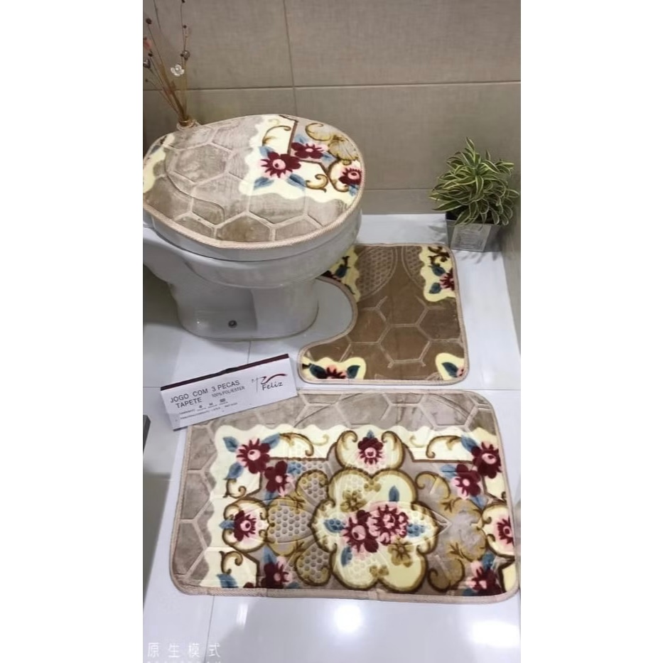 Tapates 3 Peças Para Banheiro Floral Antiderrapante Conjunto De Tapetes