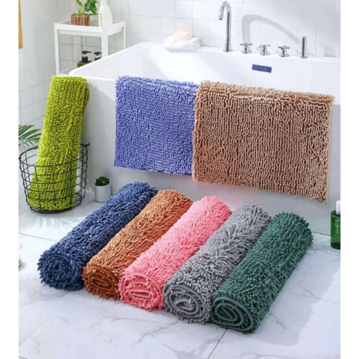 Kit 4 Tapete Macarrão 40x60 (Chenille) Antiderrapante Sintético Linha Luxo Extra Macio Porta / Banheiro