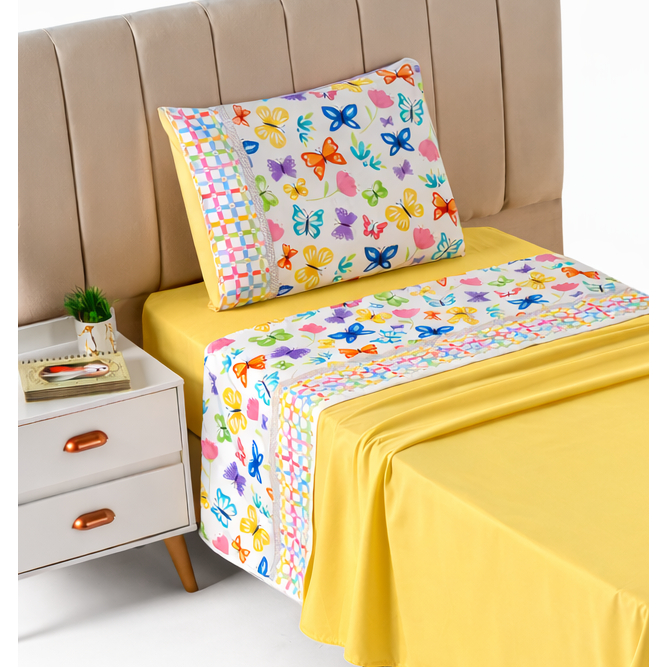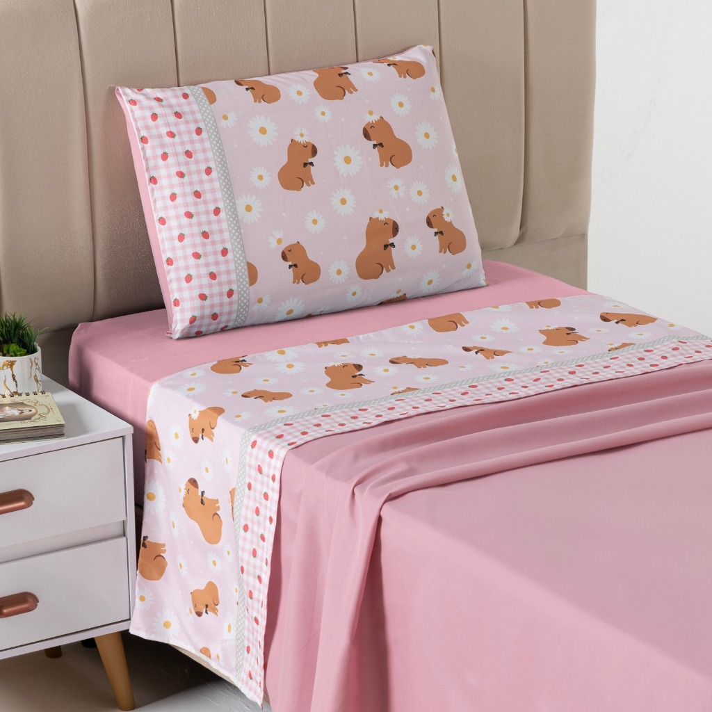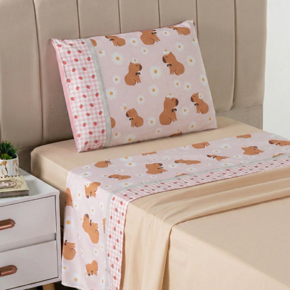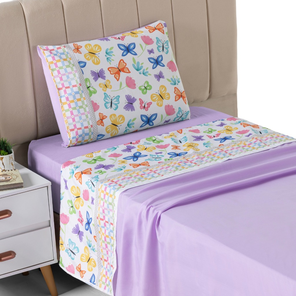Kit Jogo de Lençol Infantil Feminino 3 Peças Decorativo Moderno Estampa Premium 400 Fios Tec