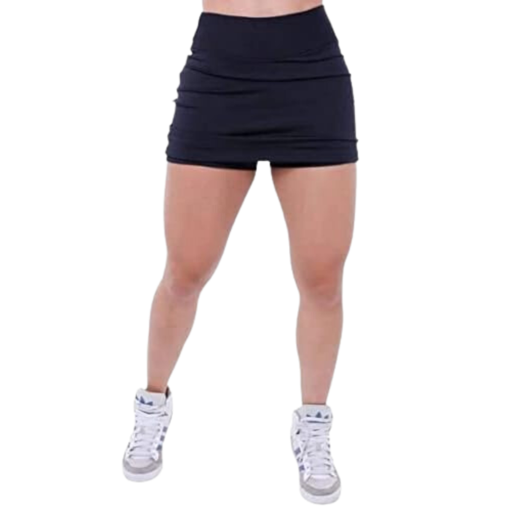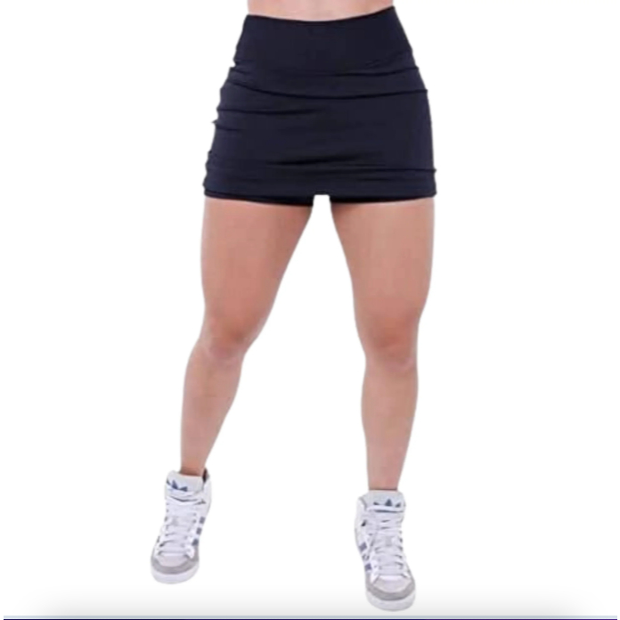 Shorts Saia Para Academia Suplex Cós Alto Preta Lisa Super Confortável - não fica transparente e não marca celulite