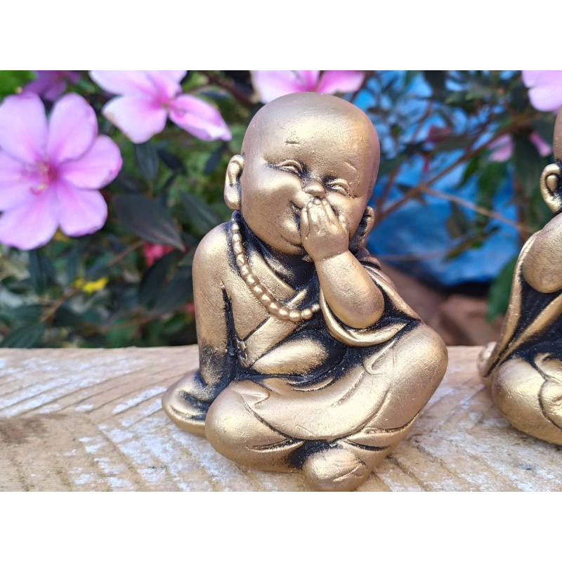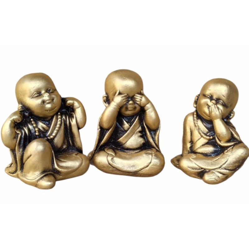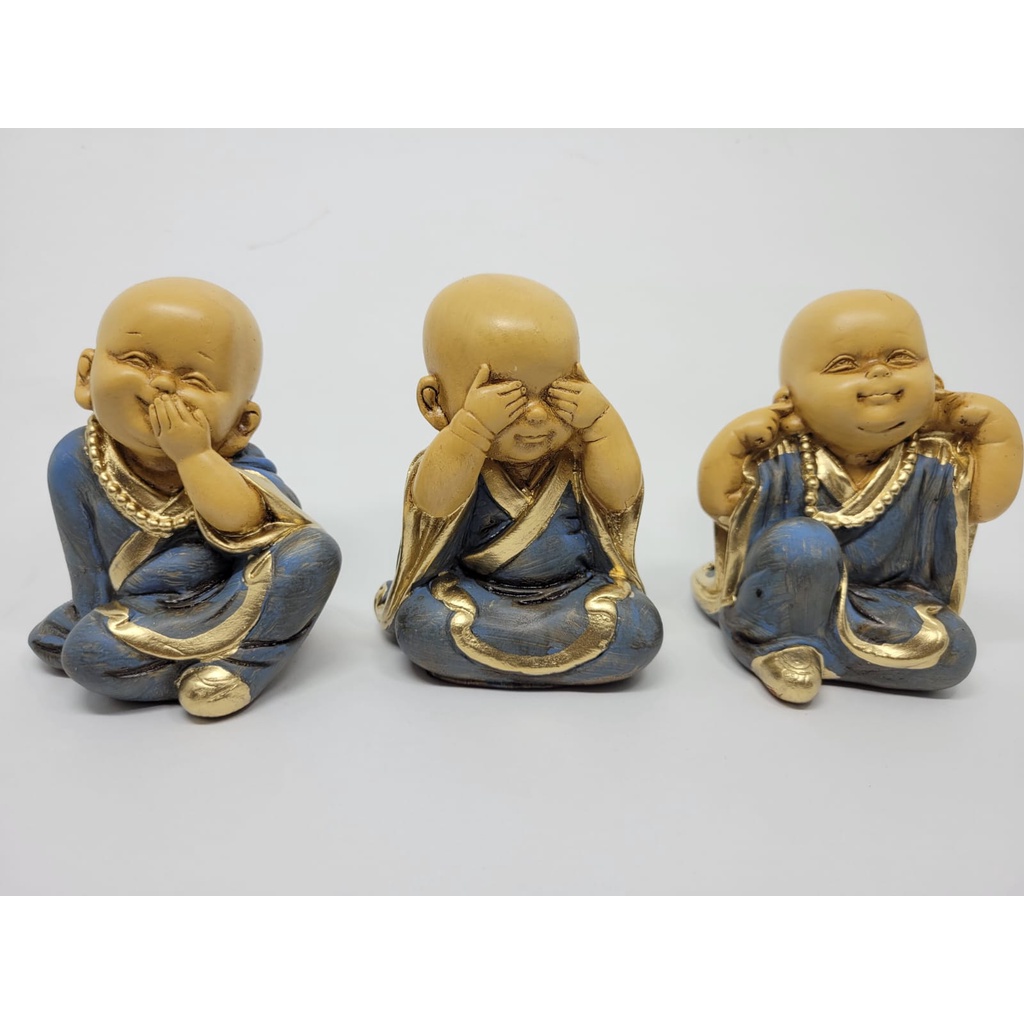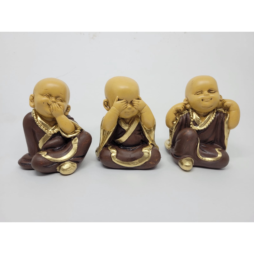 Buda Monge Trio De Budas Bebê Cego Surdo Mudo 9cm Estatueta Budas Decoração Monges A