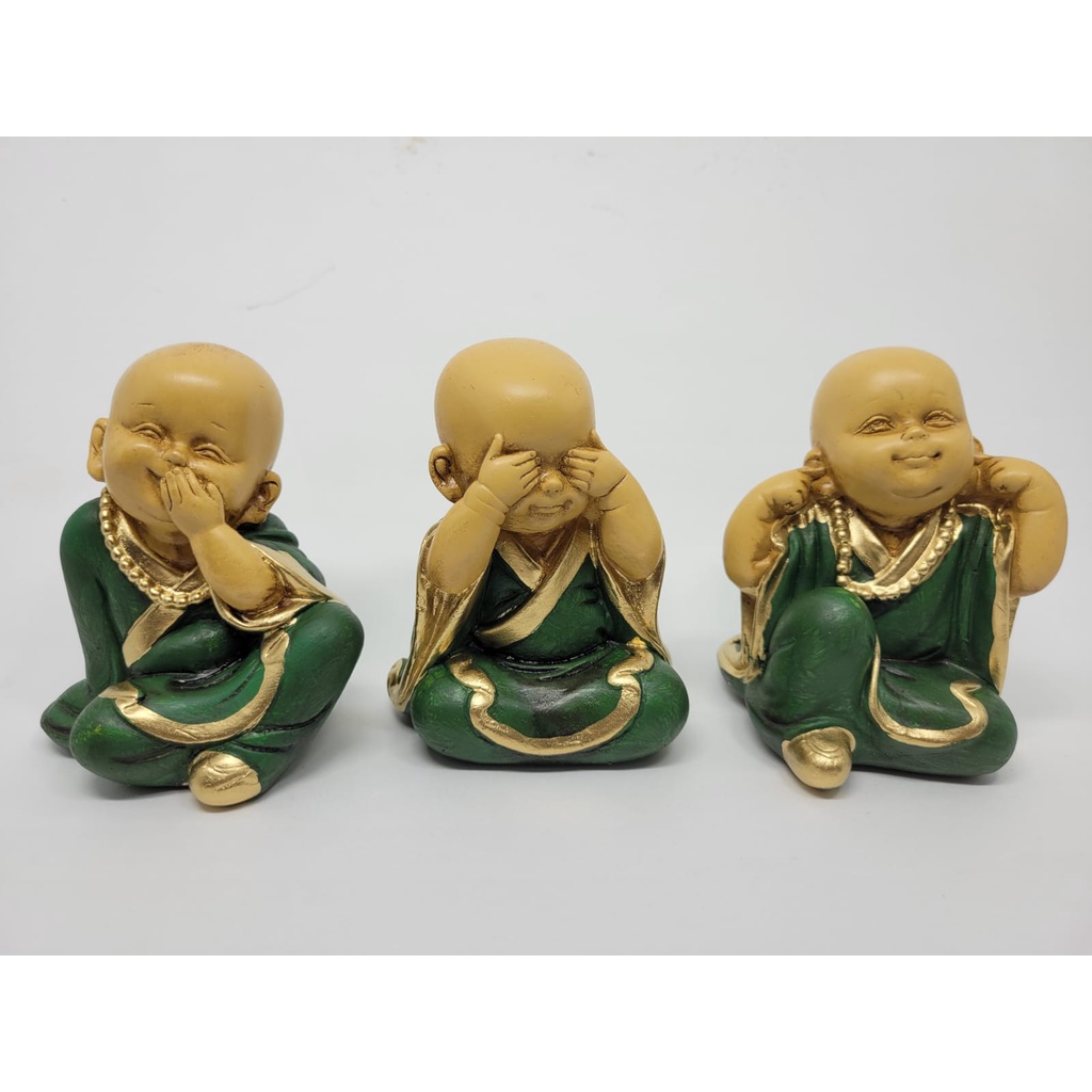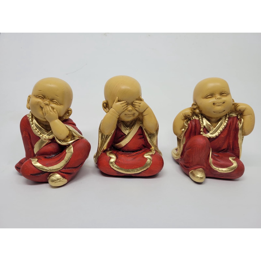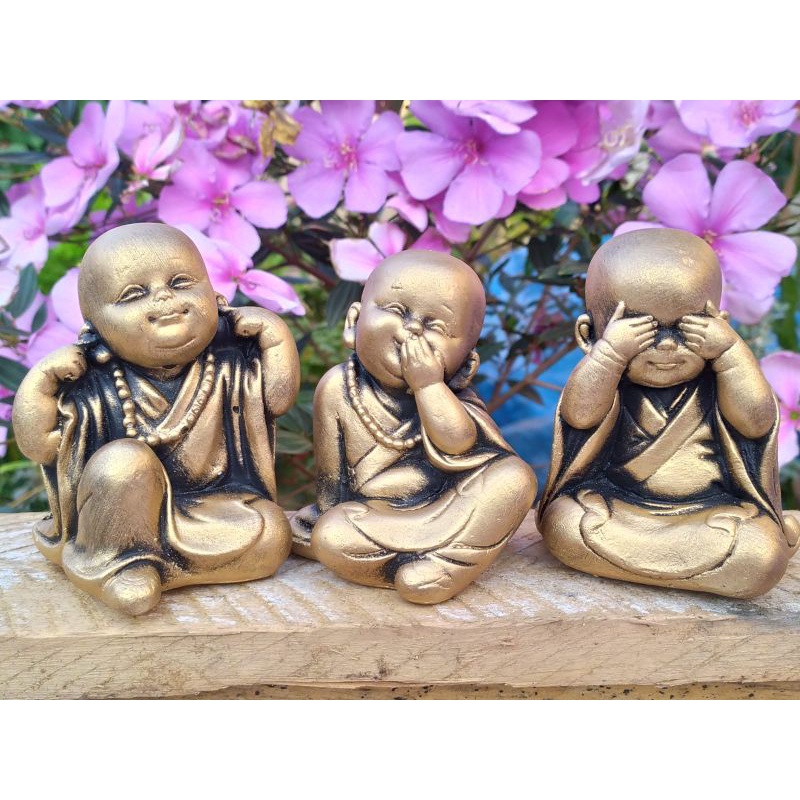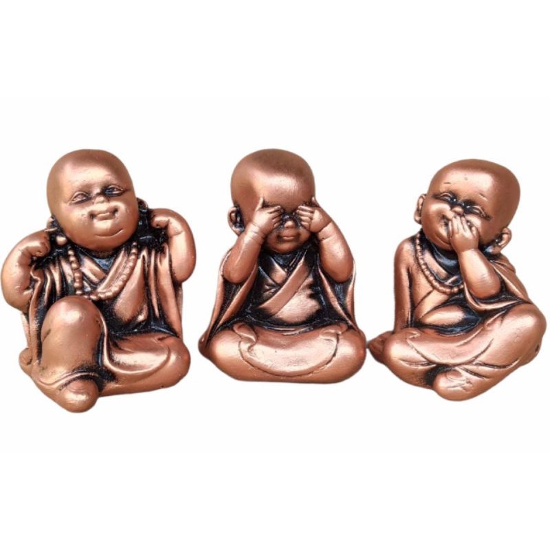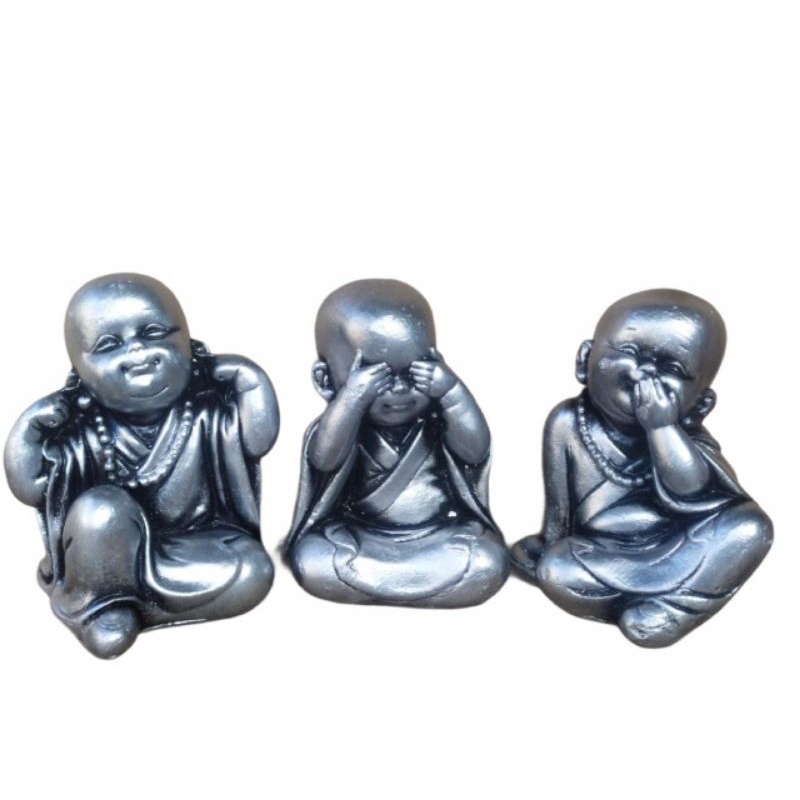 Buda Monge Trio De Budas Bebê Cego Surdo Mudo 9cm Estatueta Budas Decoração Monges A