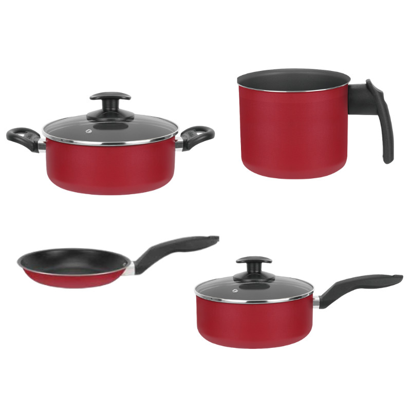 Conjunto De Panela 6 Pçs Teflon Antiaderente Tampas De Vidro
