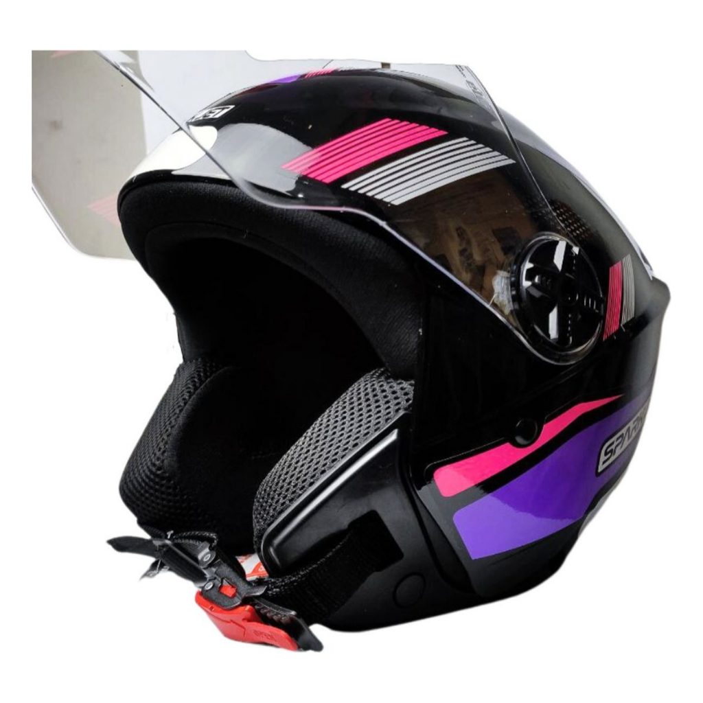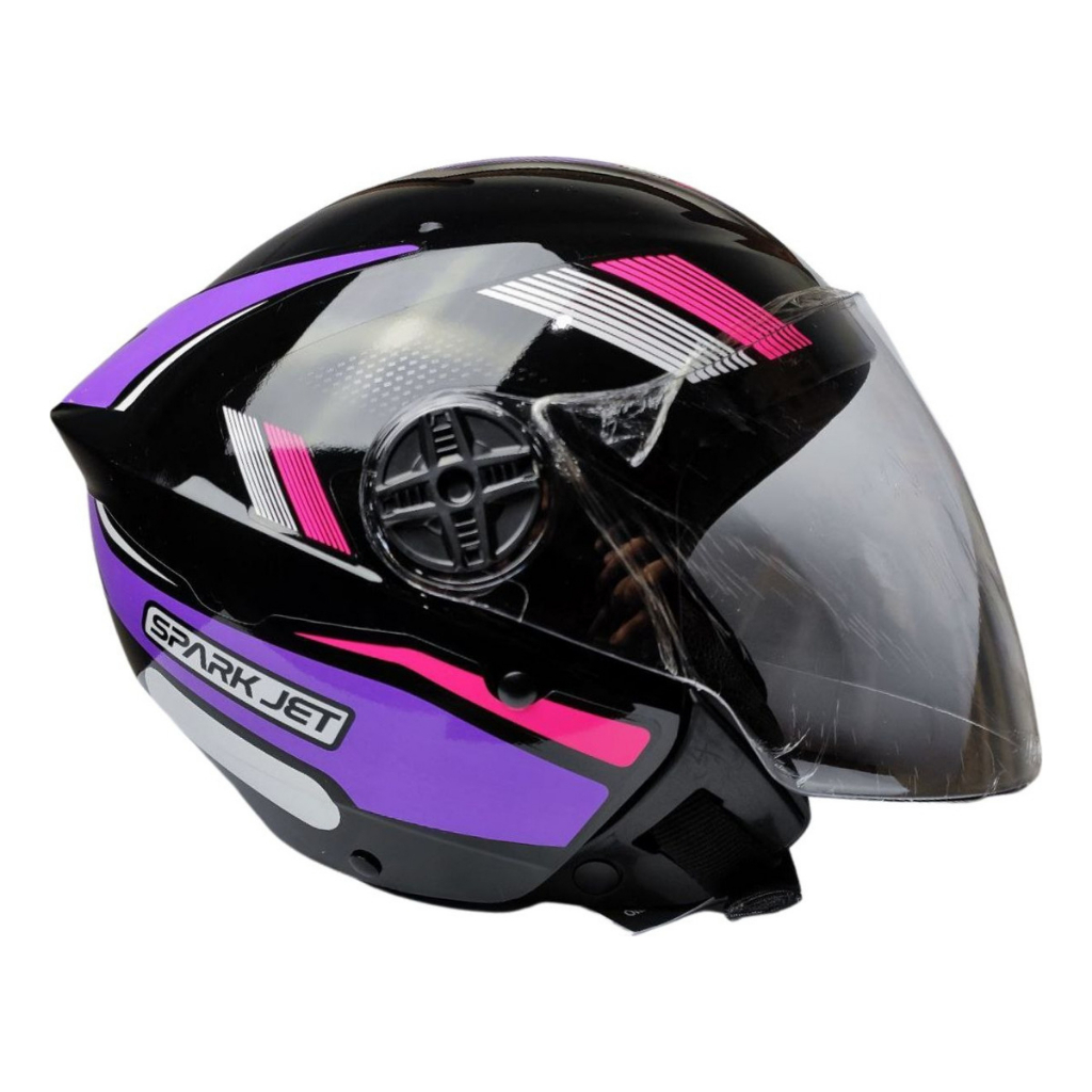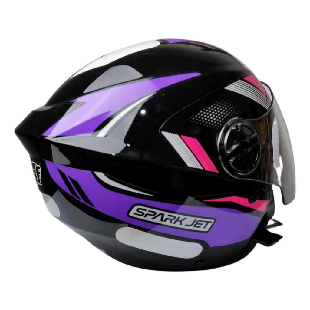 Capacete Aberto Spark Jet Sting Ebf Moto Motoboy Motoqueiro Cor Preto, Lilás E Rosa