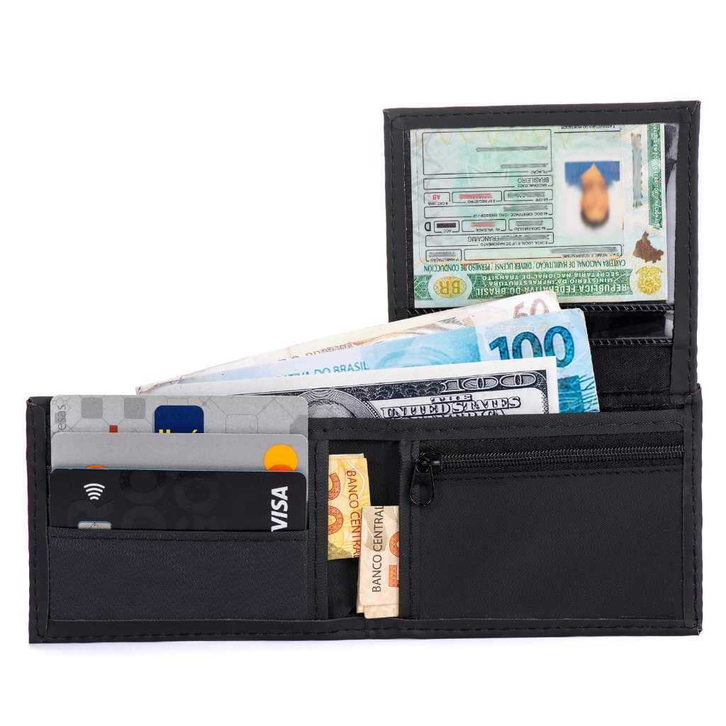 Carteira masculina de Couro Modelo L, Com plastico para RG,CPF removivel, Porta Moedas Em Ziper, Envio Imediato