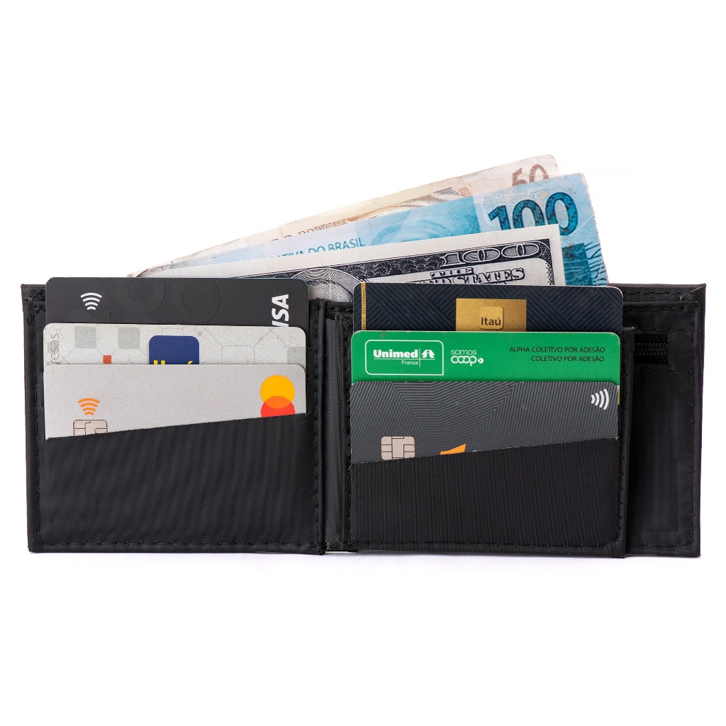 Carteira Masculina Porta RG e CNH, com 6 Porta Cartão, Porta Moedas Com Zíper.