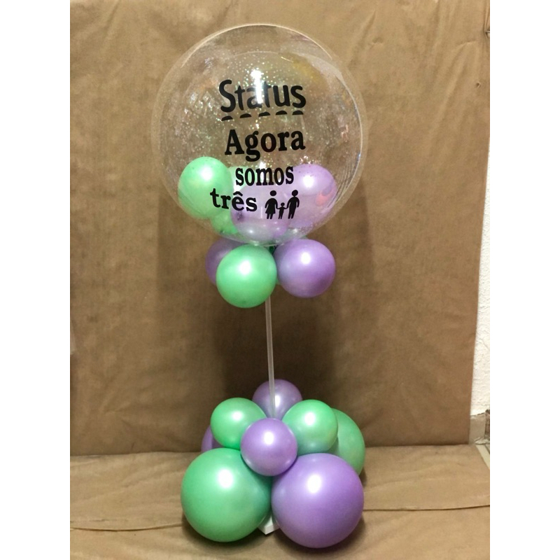 Suporte de Balão de Bubble Aste Transparente 50 cm e Base Em MDF , kit 2 unidades