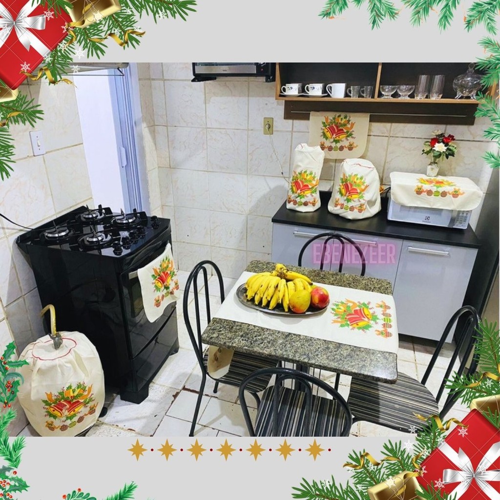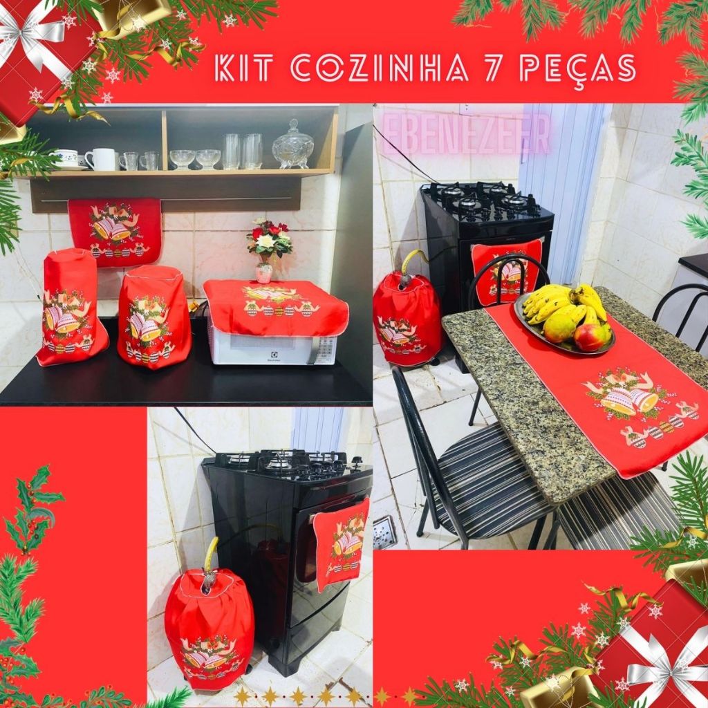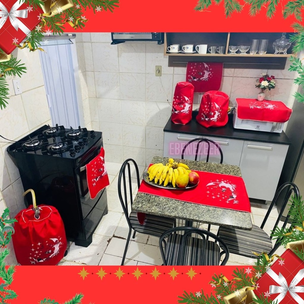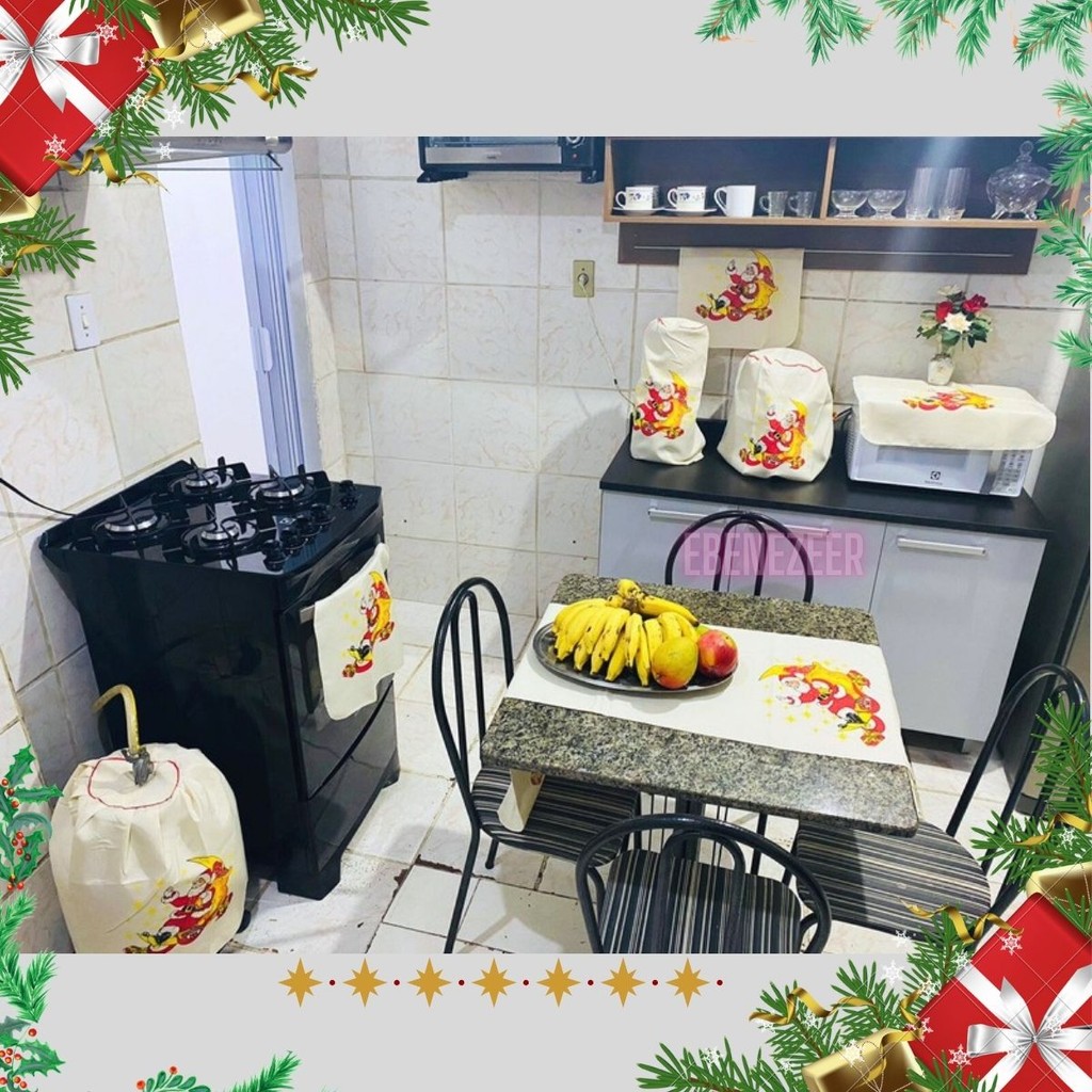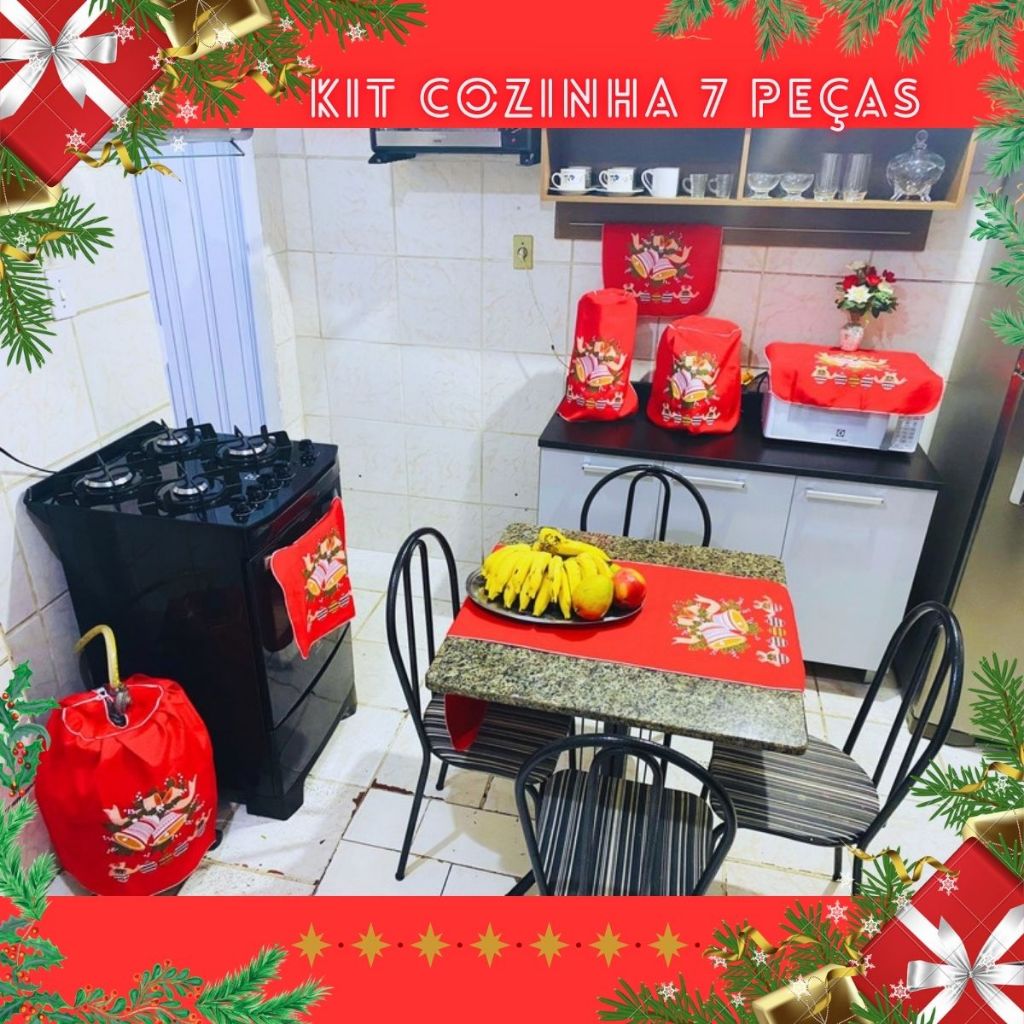 Jogo Cozinha Pano 7 Peças Natal Natalino Papai Noel SInos Presentes Enfeites Decoração Natal Barato