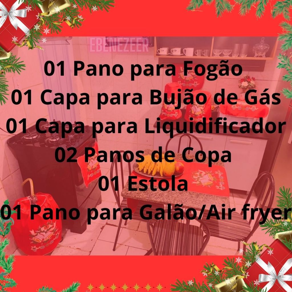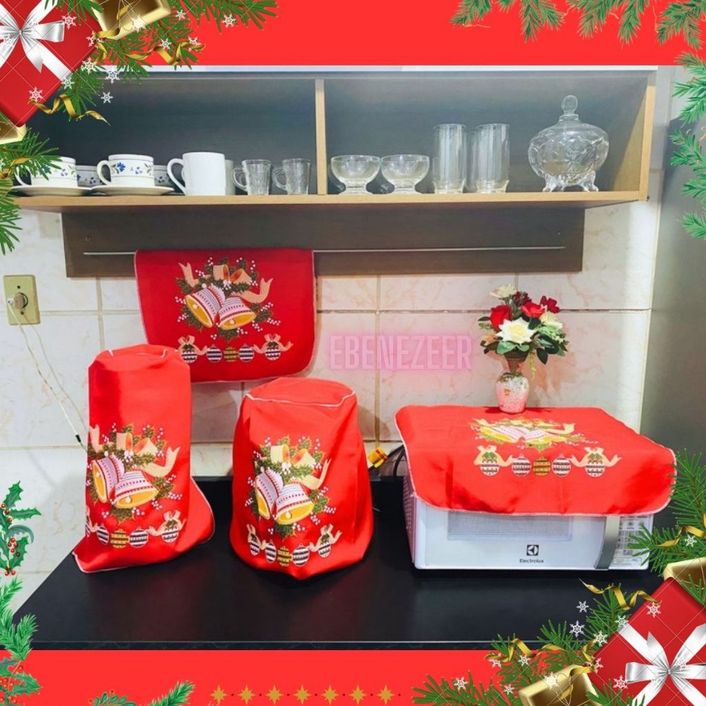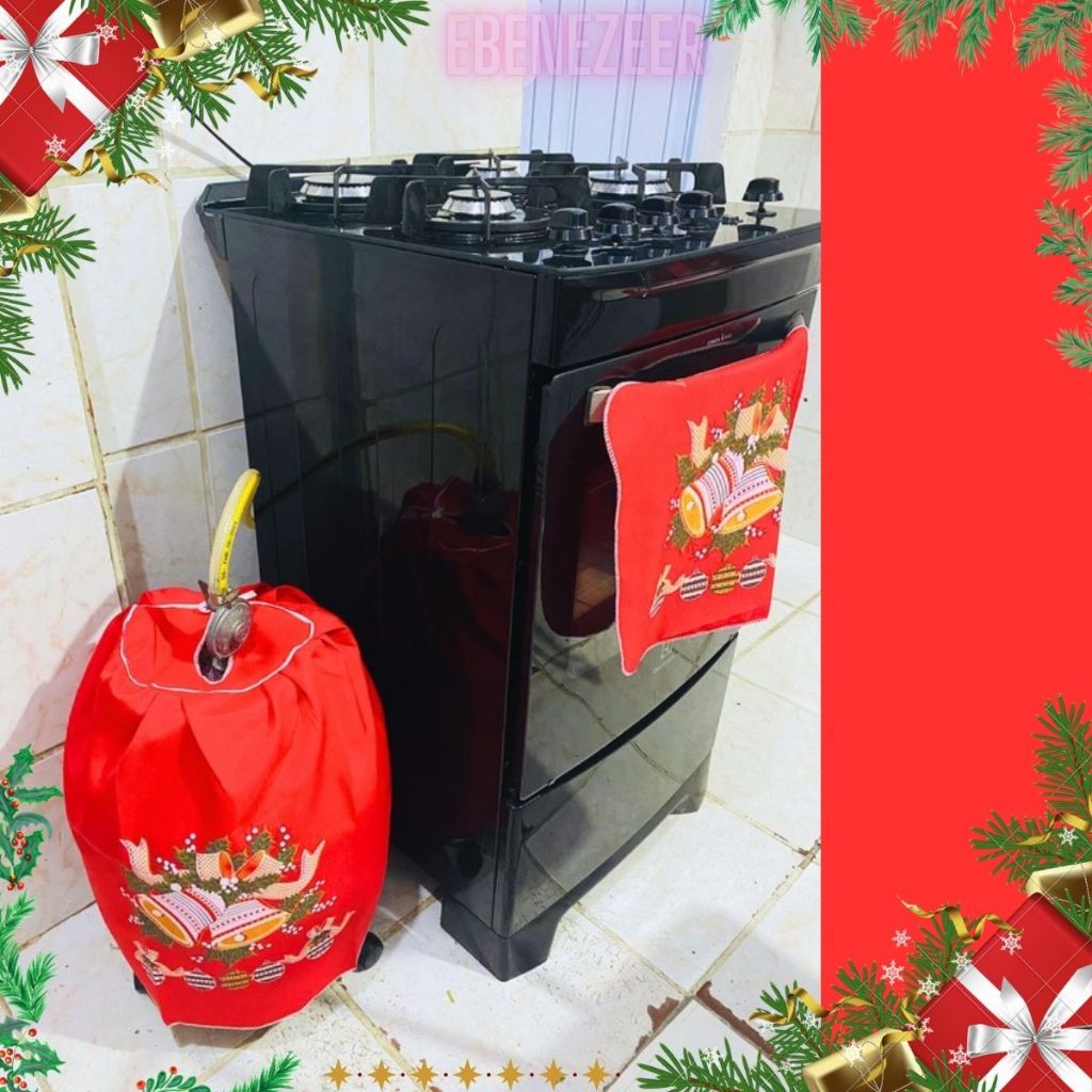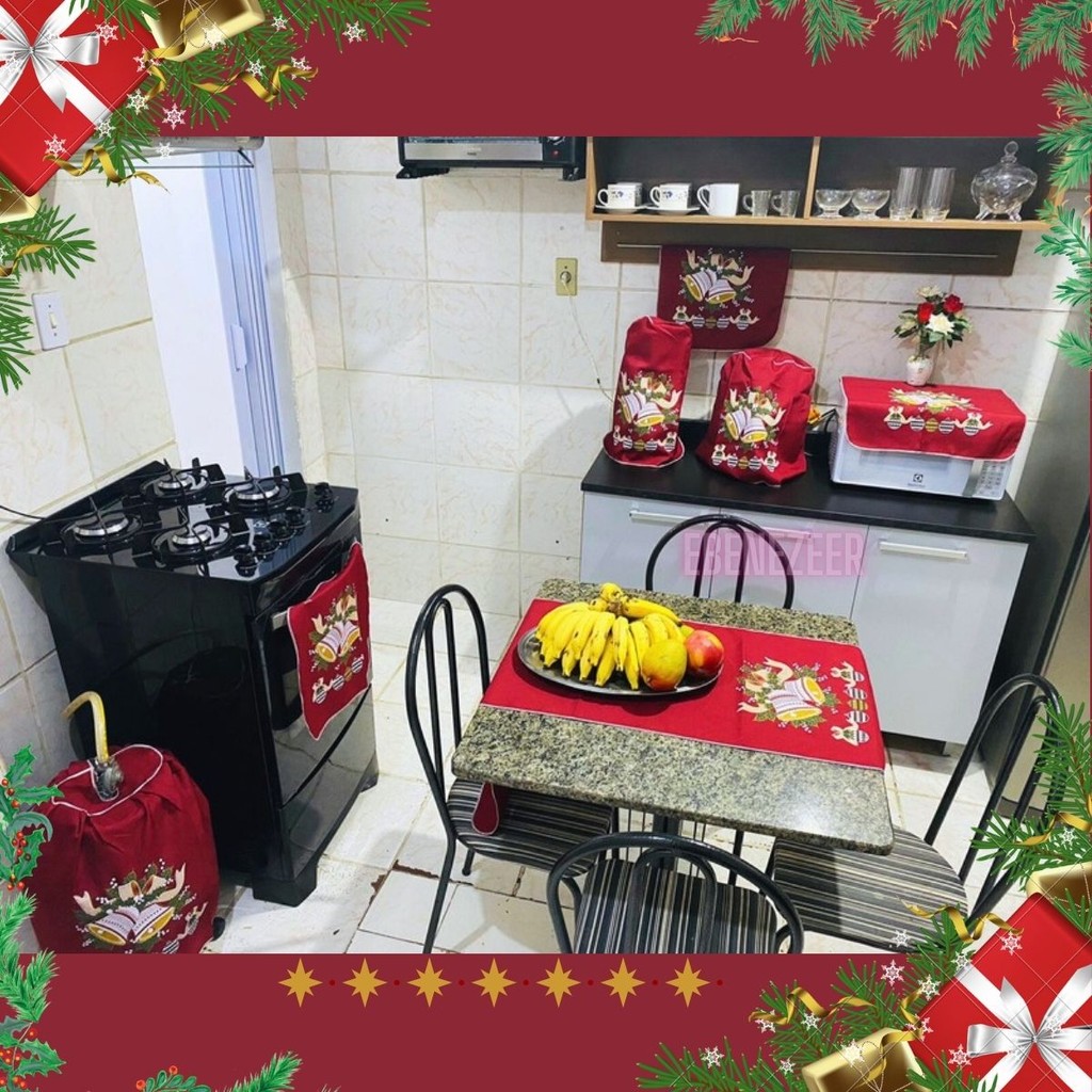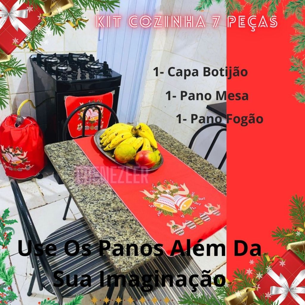 Jogo Cozinha Pano 7 Peças Natal Natalino Papai Noel SInos Presentes Enfeites Decoração Natal Barato