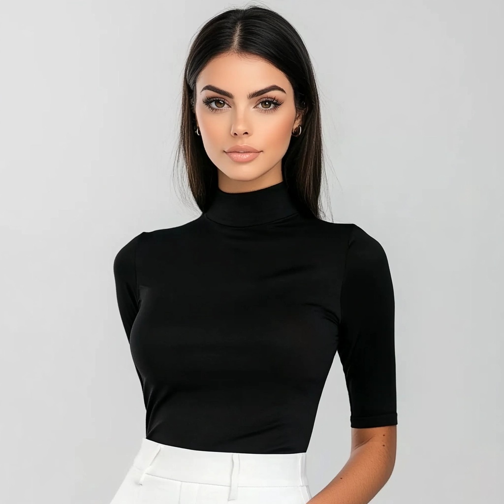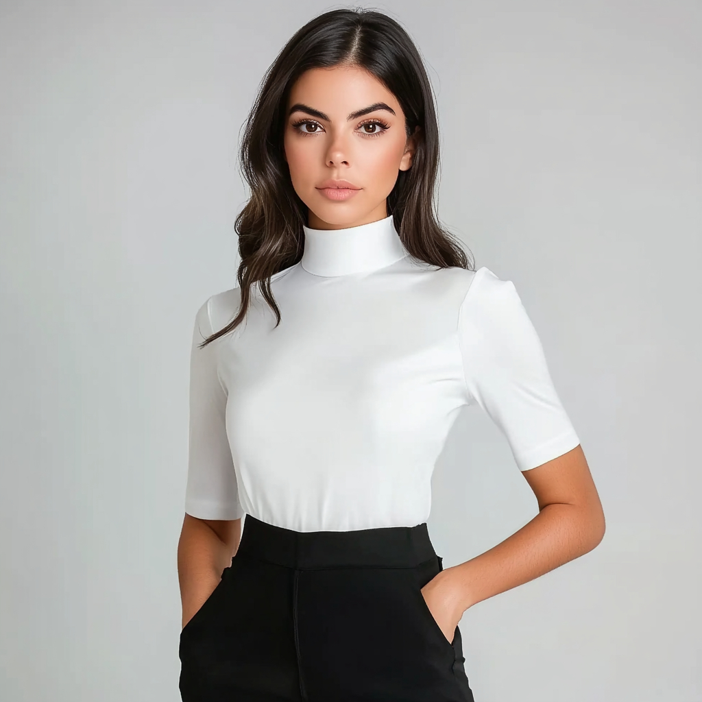Blusa Feminina Cacharrel Manga Curta Segunda Pele Gola Alta Tecido Suplex