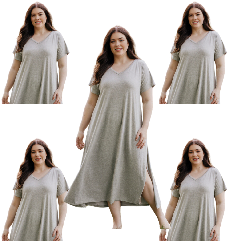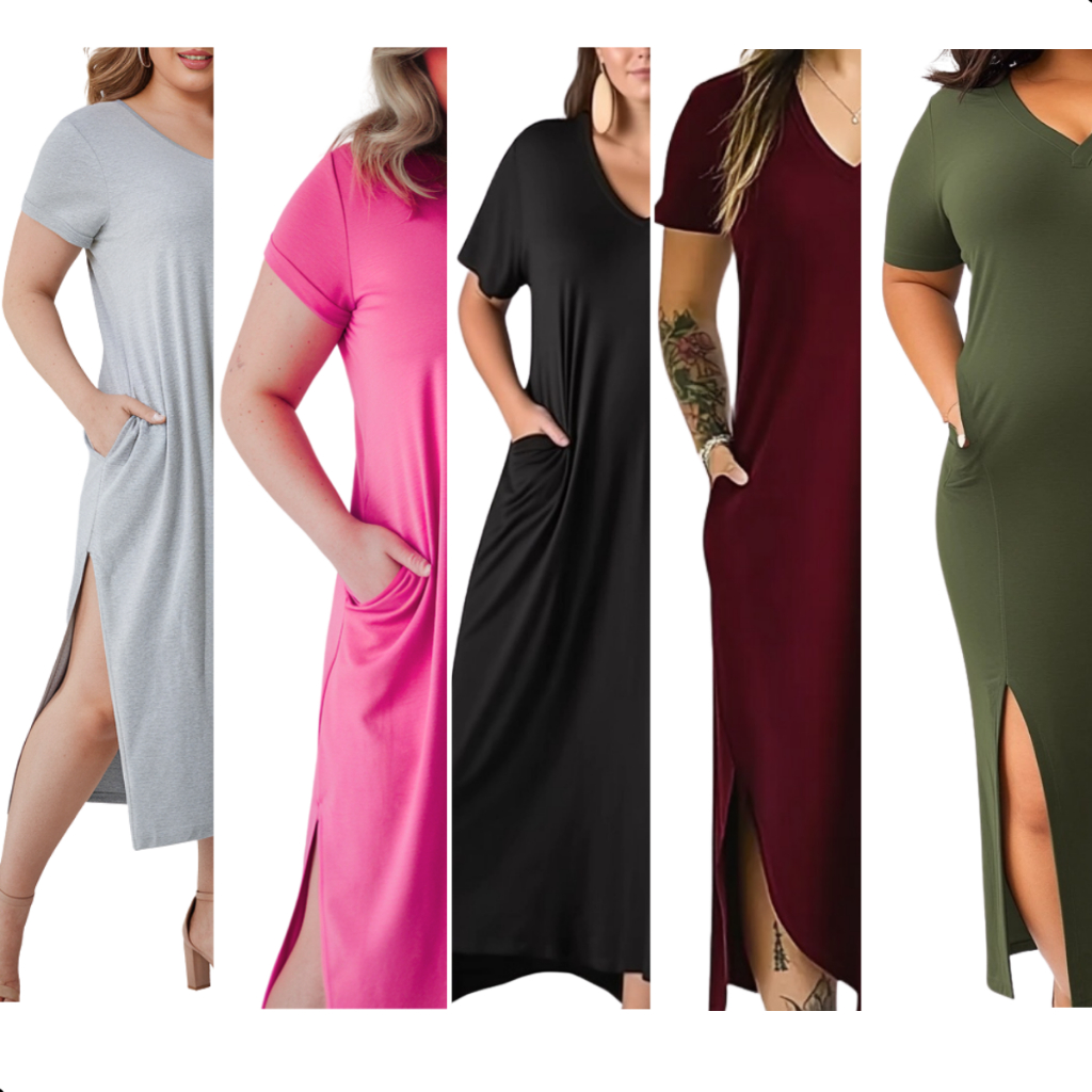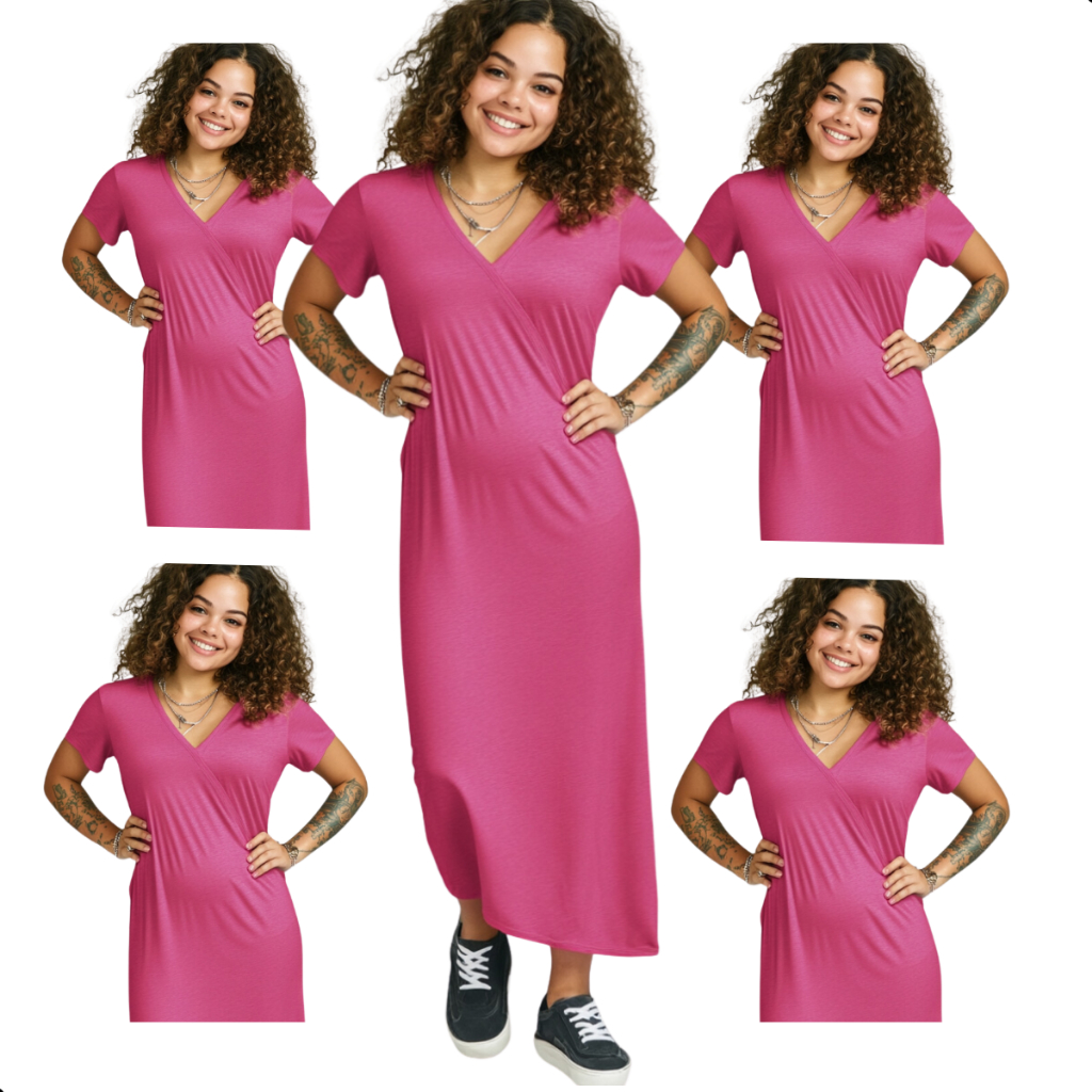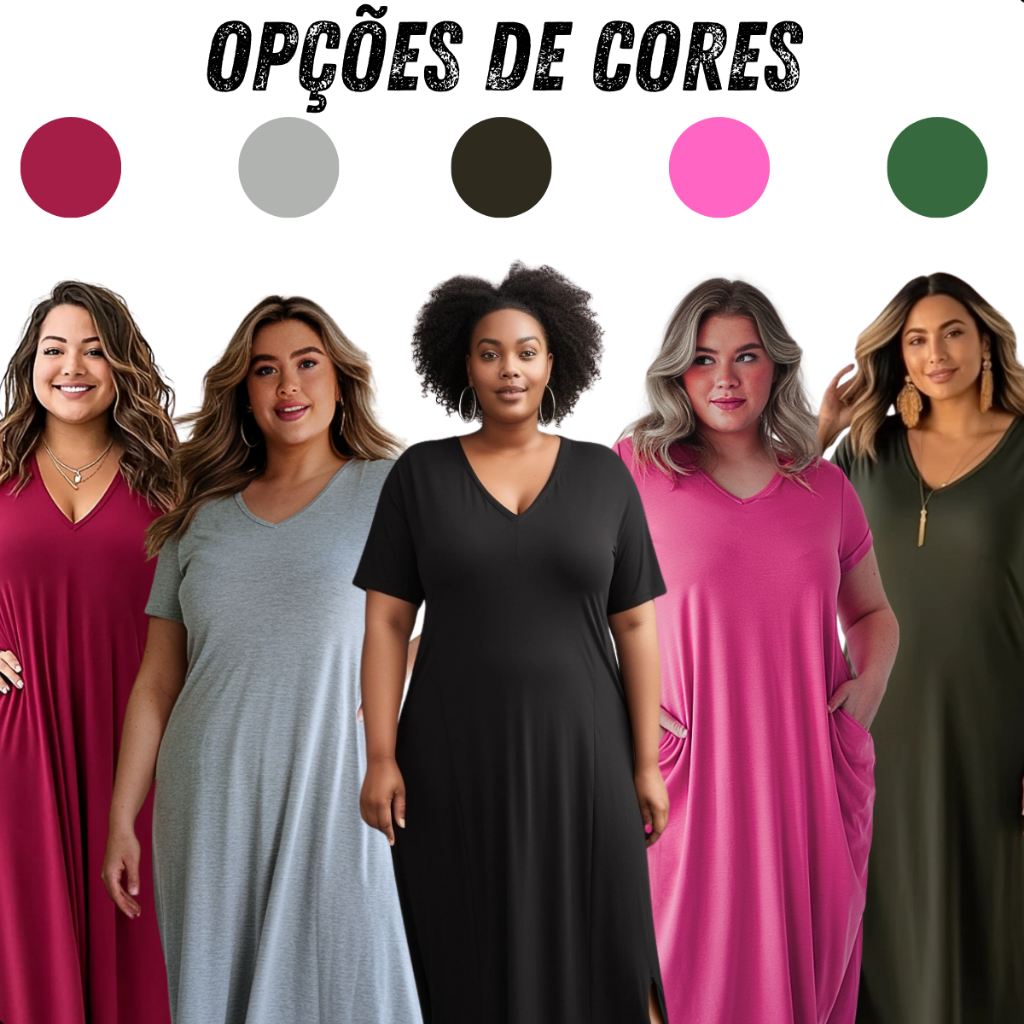 Vestido Gestante Feminino Soltinho Plus Size Longo Com Bolso Fenda Lateral Liso Confortável do P ao G3