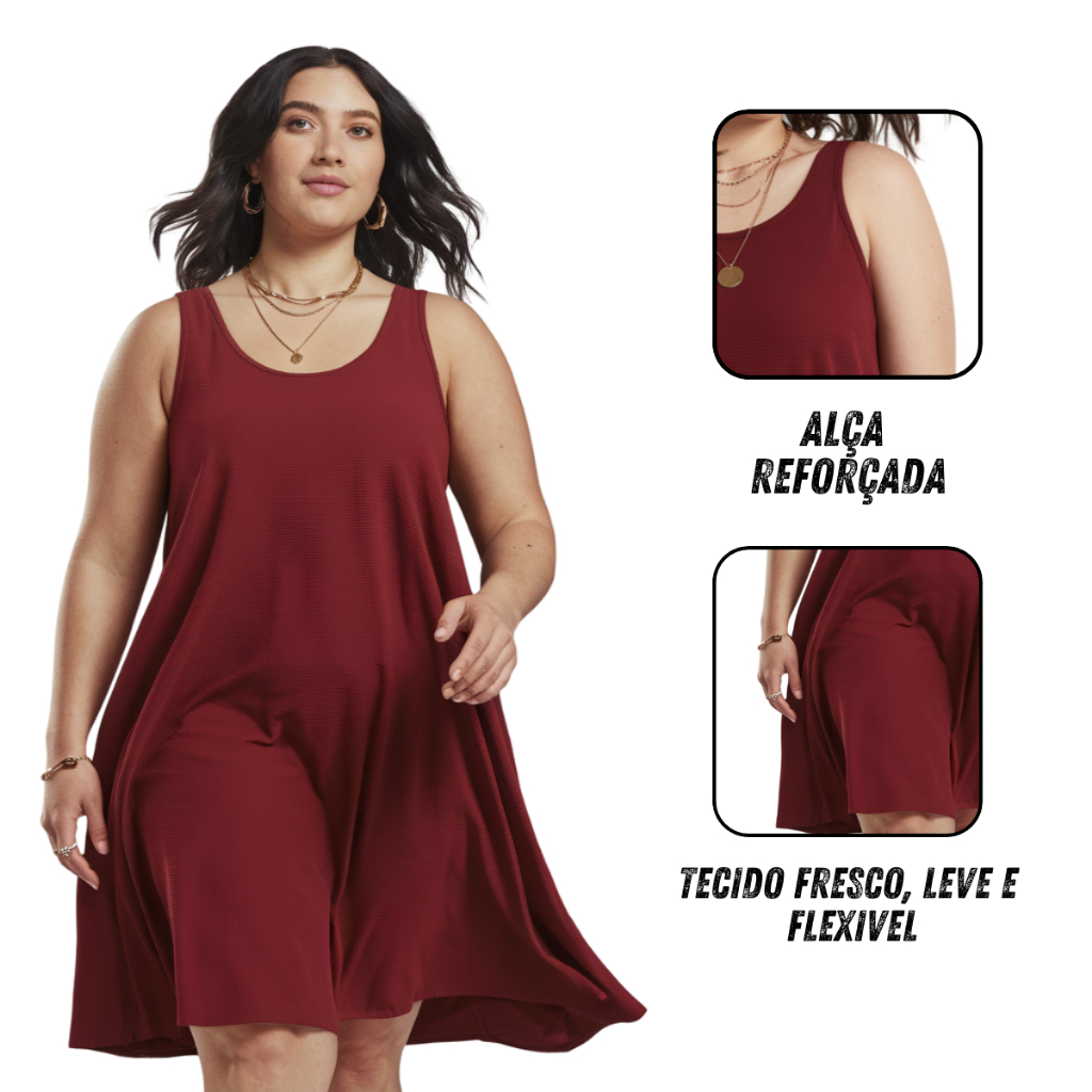 Kit Vestido Feminino Plus Size de Alcinha Soltinho Grávida Regatinha do P ao G3