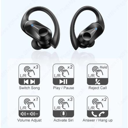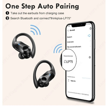 Fone De Ouvido Lenovo LP75 Sem Fio Bluetooth 5.3 Com Gancho Esportivo HiFi Estéreo