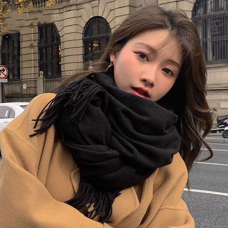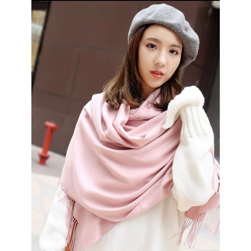 Cachecol Pashmina Lisa Grosso de poliester de 230g com franjas Presentes Quente