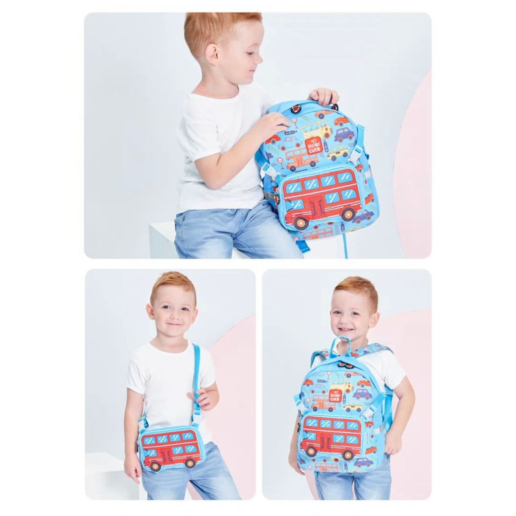 Kit Mochila Bolsa Escolar Passeio Impermeável Removível 2 em 1 Infantil De Dinossauro, Babyshark, Carro, Austronalda