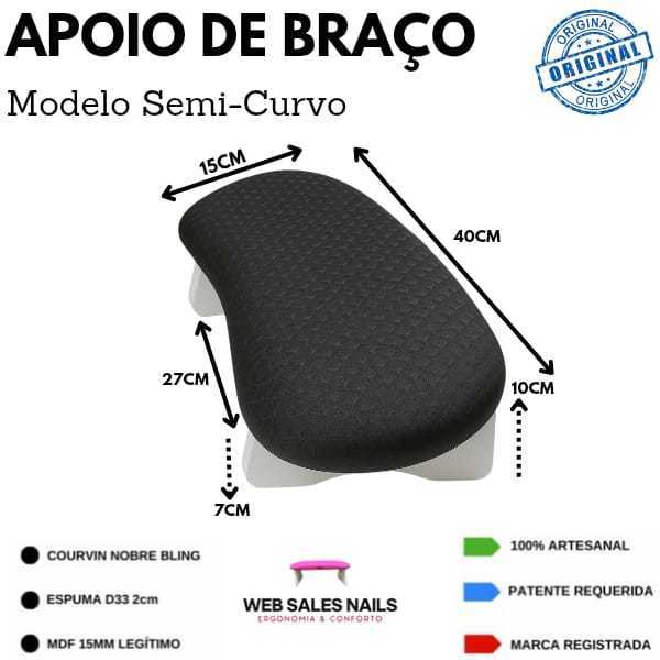 Apoio Suporte De Braço Mão para Manicure Semi-curvo 10cm Altura + Apoio de Cotovelo Sofisticado - Web Sales Nails