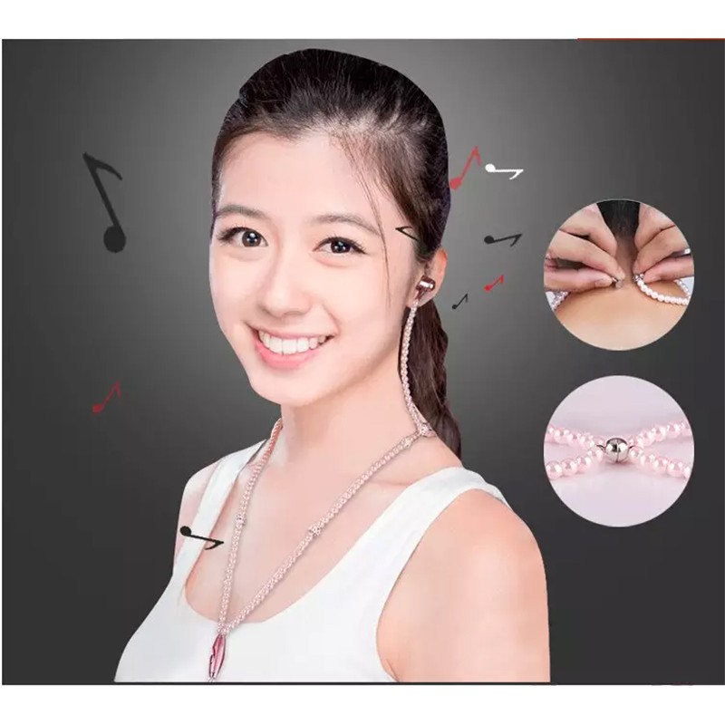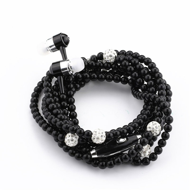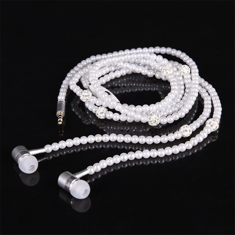 Colar De Pérolas Fone De Ouvido 3.5mm Intra-Auriculares Com Strass Rosa/Joias/Contas/Fones Microfone Para Brithday