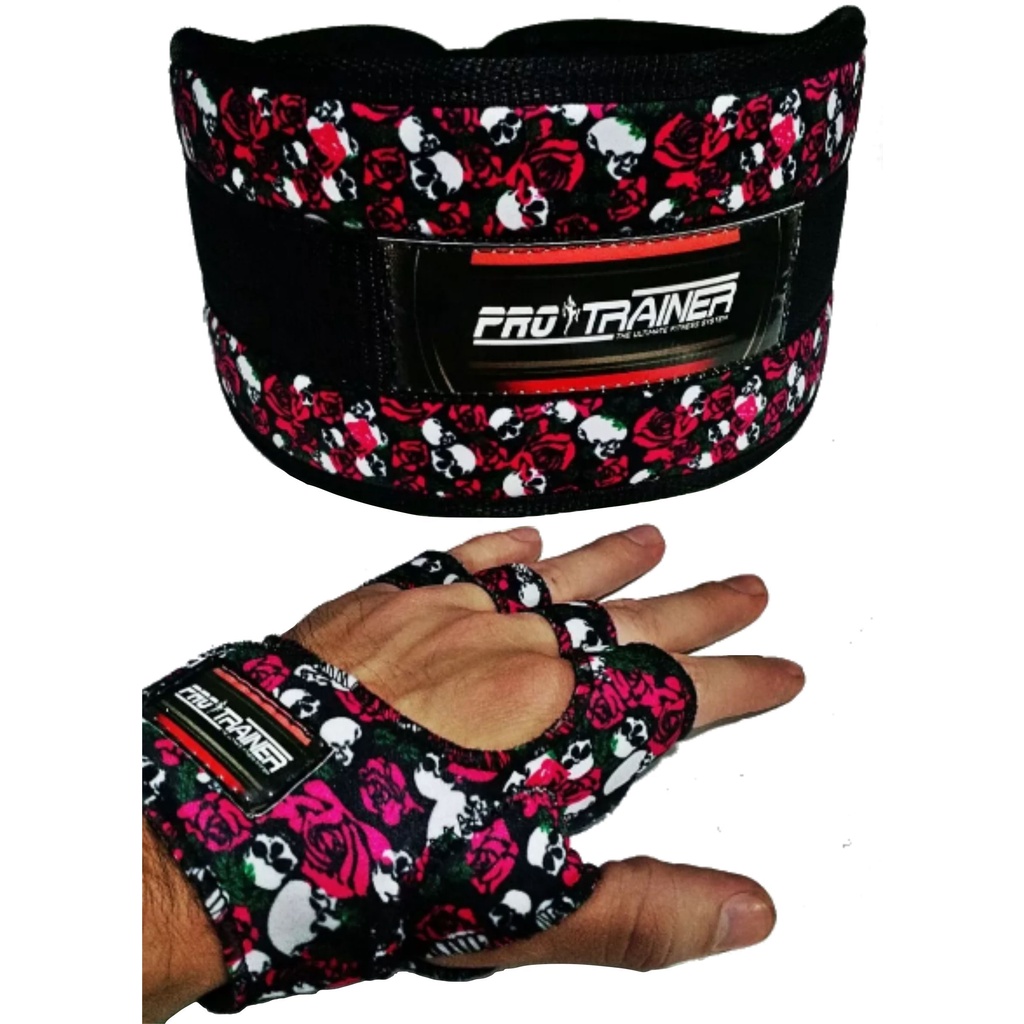 Kit Cinturão + Luva com polegar Treino Funcional Proteção Lombar