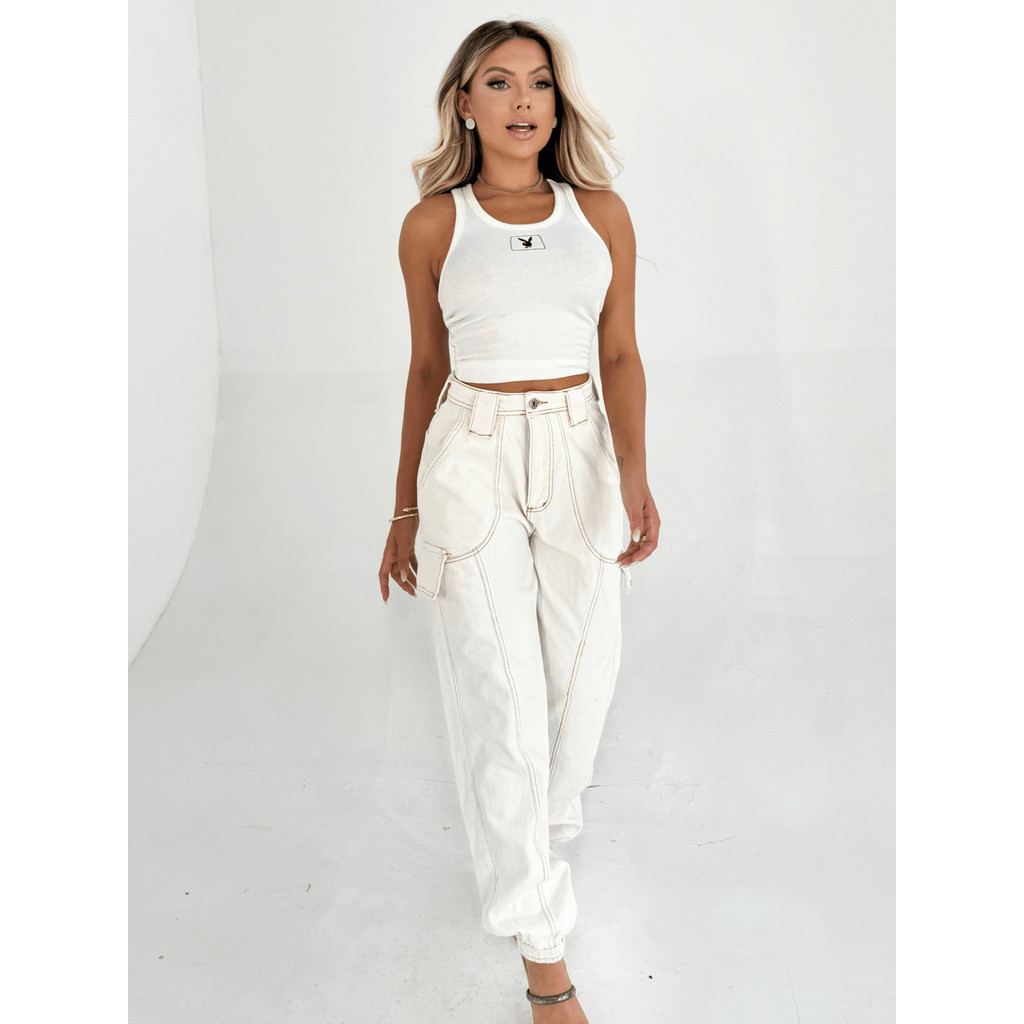 Coolestfemininay 8202 Calça Jeans Feminina Mom Calca Com Bolsa 8202