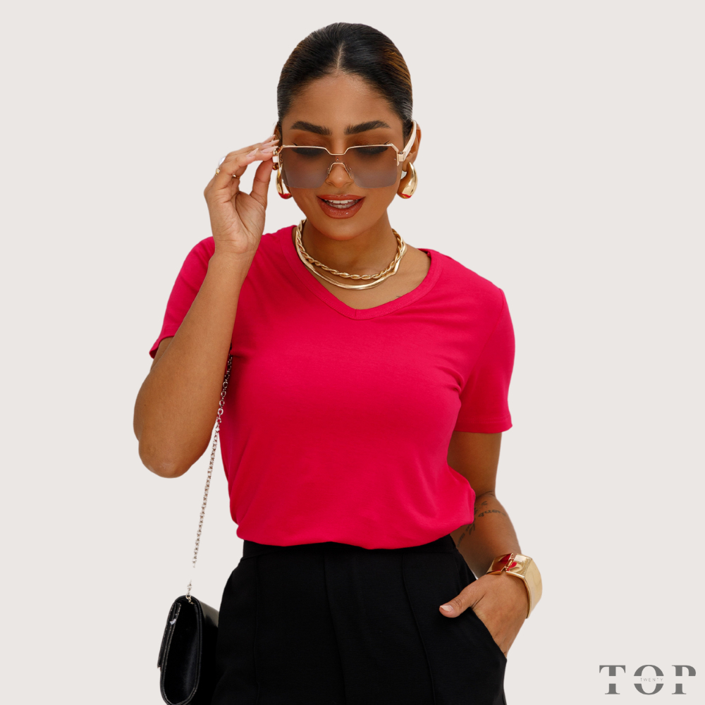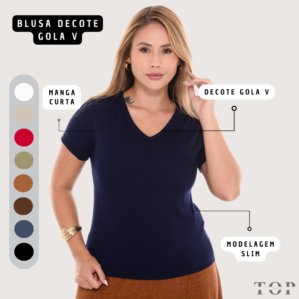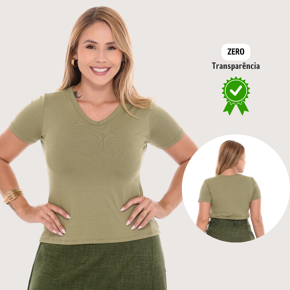 Blusa Baby Look Feminina T-Shirt Camiseta Manga Curta Manga Curta Gola V