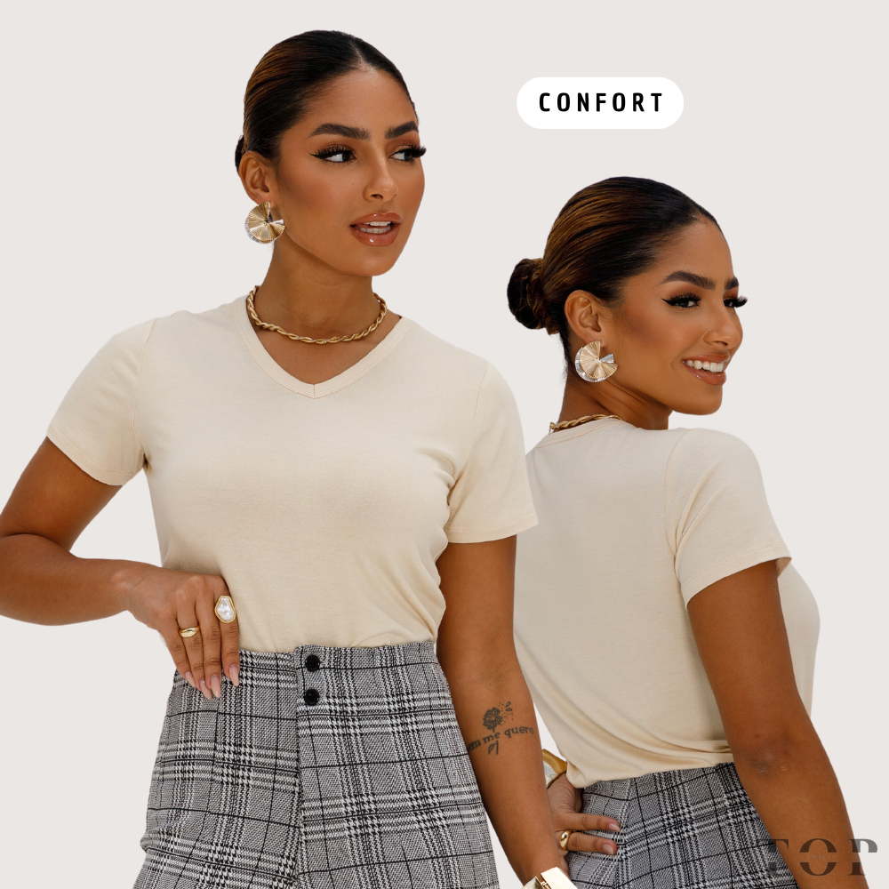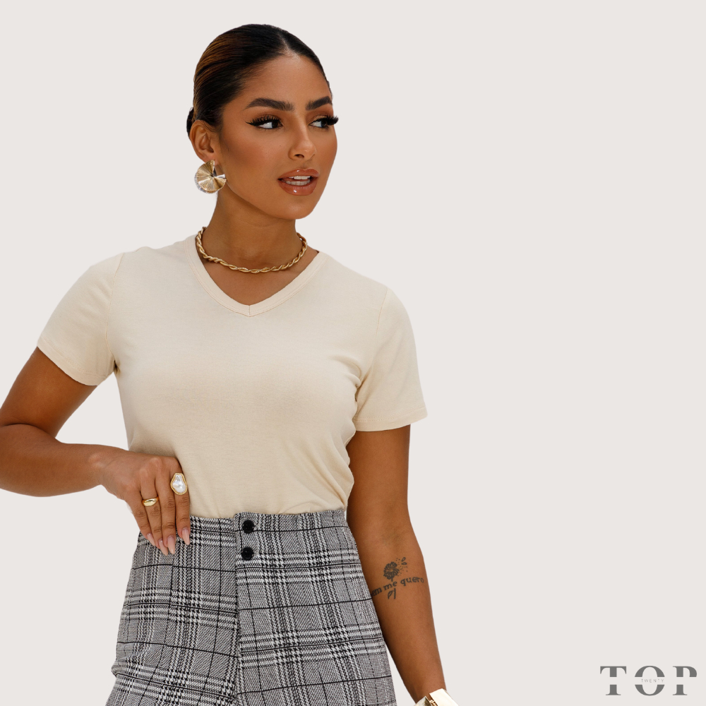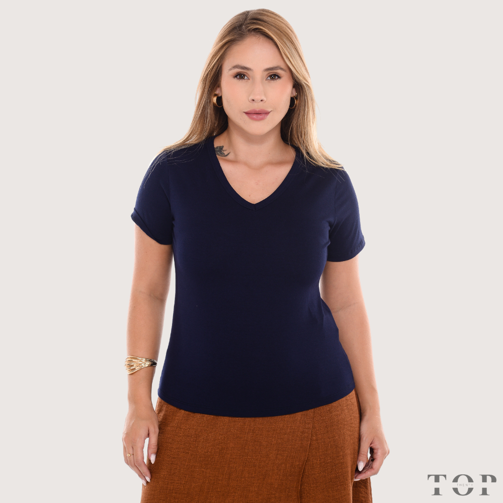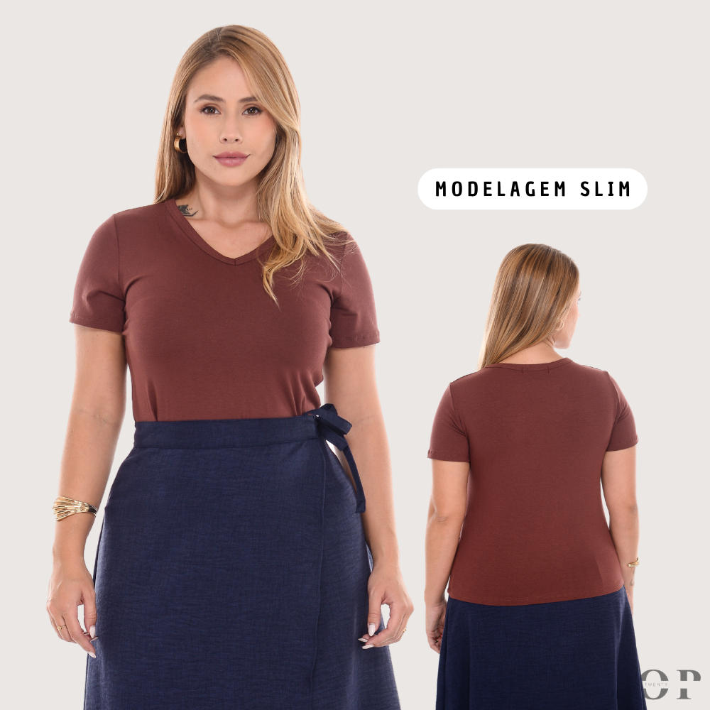 Blusa Baby Look Feminina T-Shirt Camiseta Manga Curta Manga Curta Gola V
