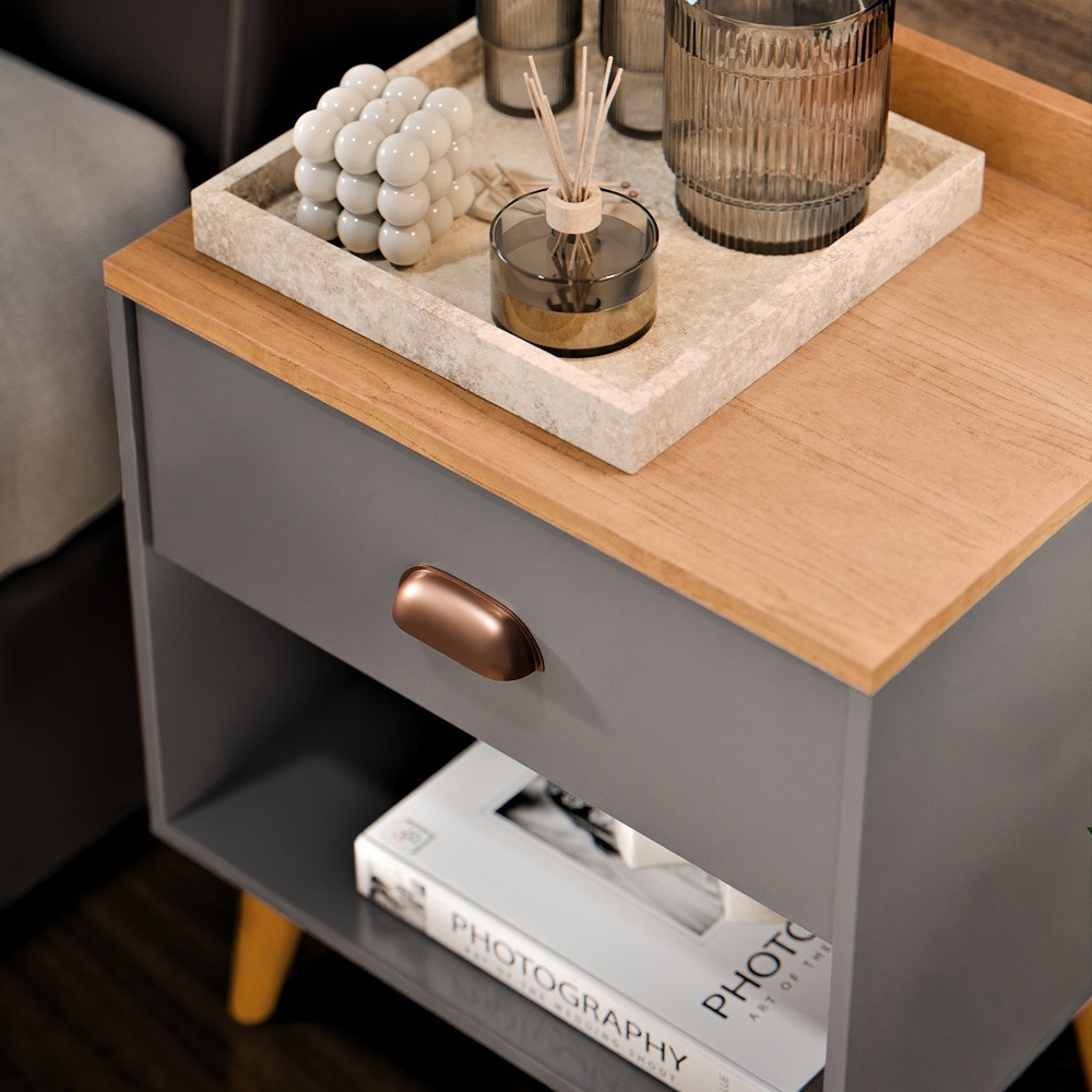 Mesa de Cabeceira Alice Lateral Estilo Dream Retro Com Nicho e Gaveta - Cores