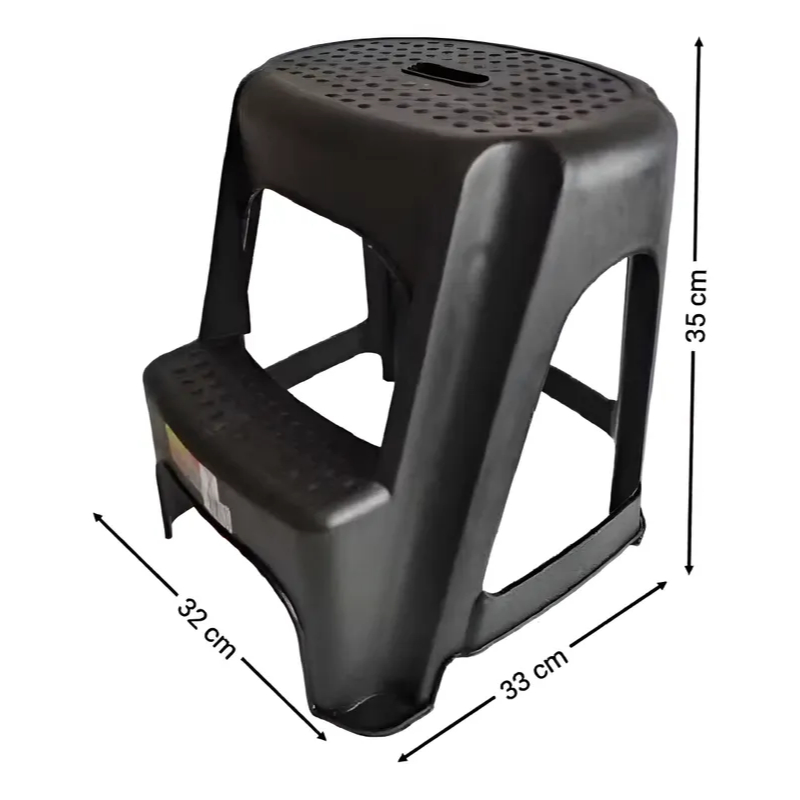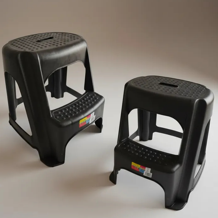 kit 2 Bancos Banqueta Escada de Plástico Multiuso Preto - Poly Plast