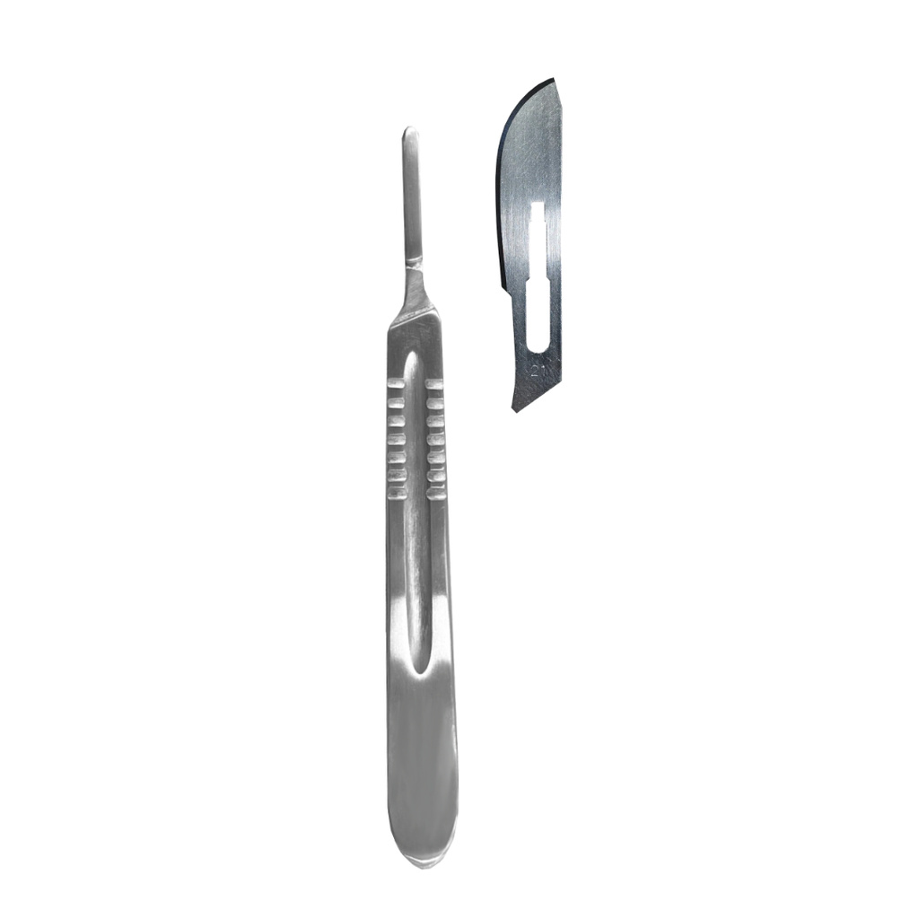Kit Dermaplaning 10 Lâminas Nº 21 Cabo Bisturi Nº 4 Uso Estético