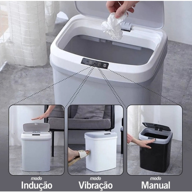 Lixeira C Sensor Automática Inteligente de Banheiro Cozinha Escritório 16 Litros