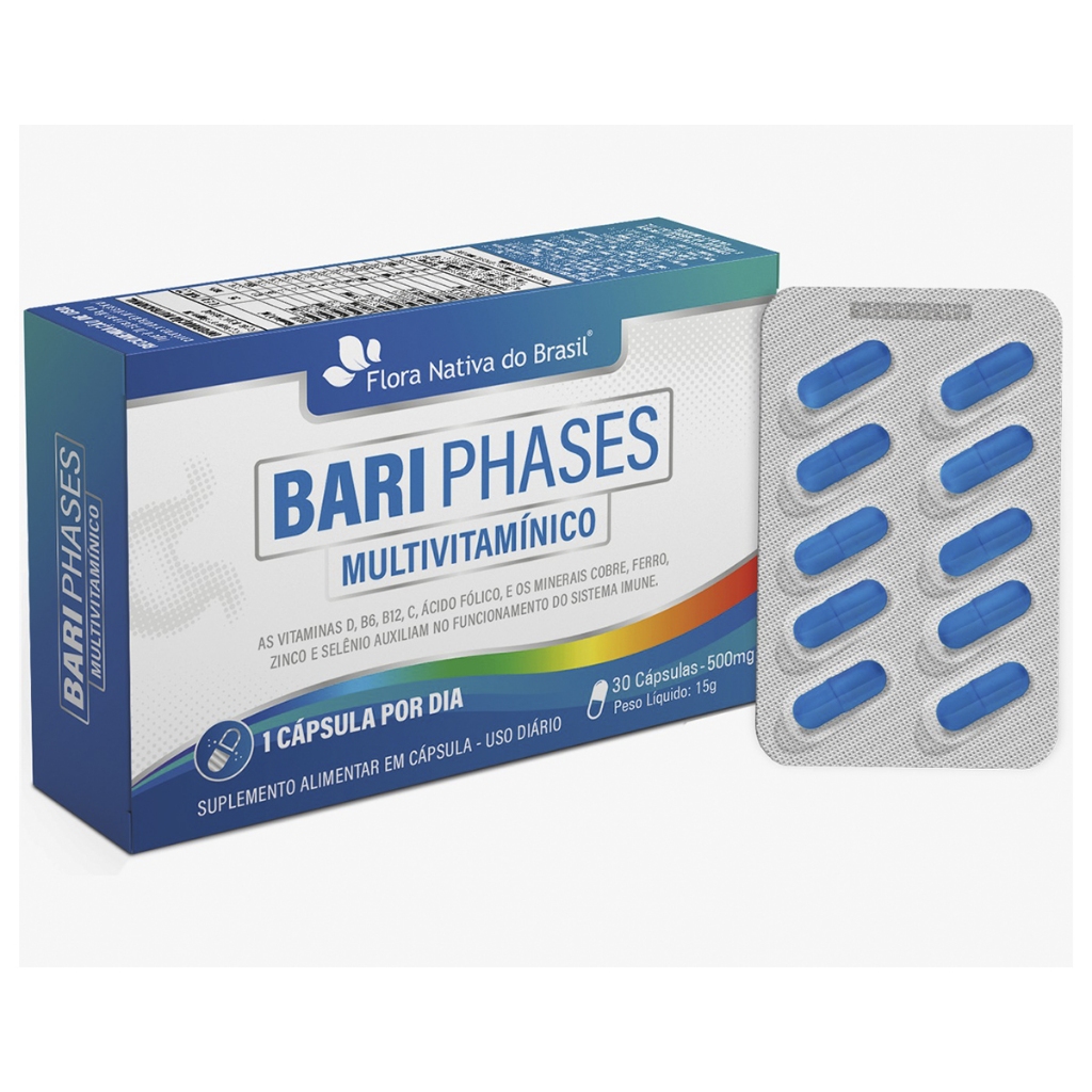 Multivitamínico Bari Phases Com Vitamina D B6 B12 Ácido Fólico Cobre Ferro Zinco 30 Caps 500mg