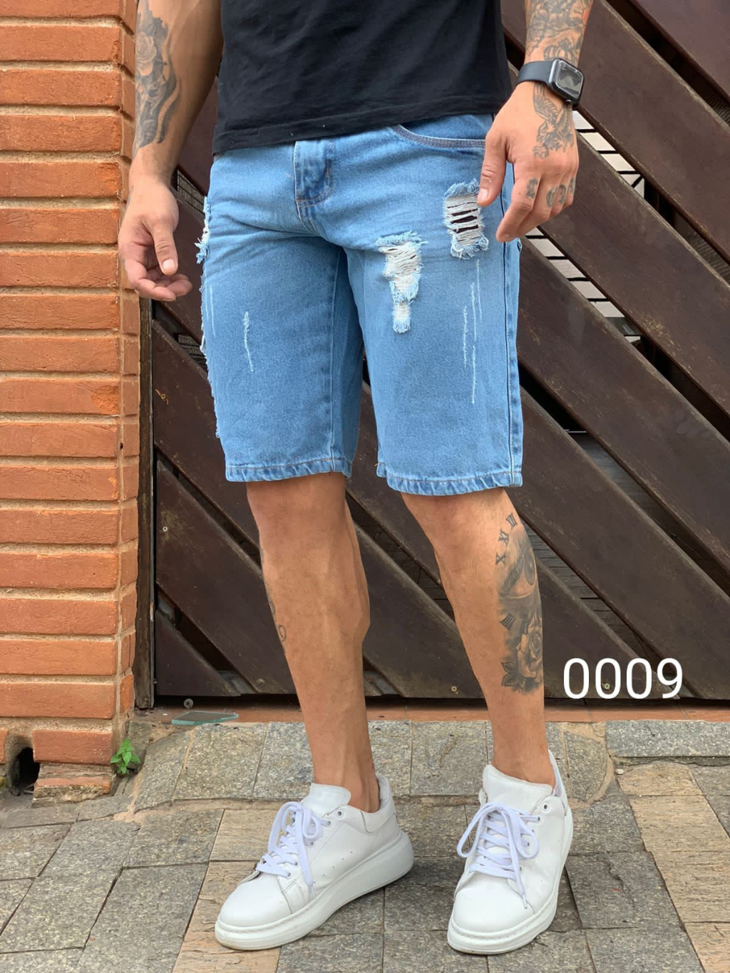 bermuda jeans masculina rasgada slim Premium