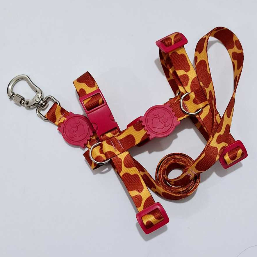 Peitoral H Anti-puxão estampa girafa rosa para cachorro