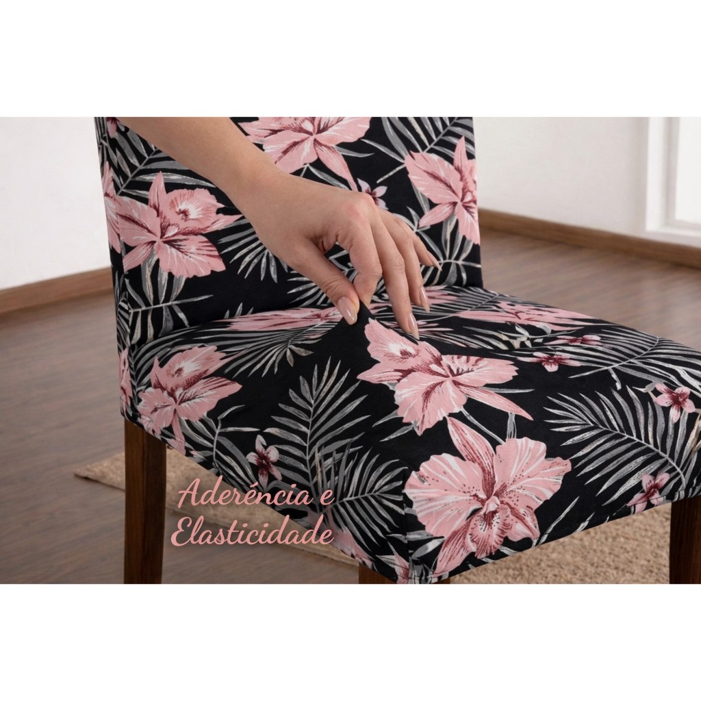 KIT 4 ou 6 Capa de Cadeira Floral Luxo Premium - Elásticada Malha Gel Estampada ou Lisa