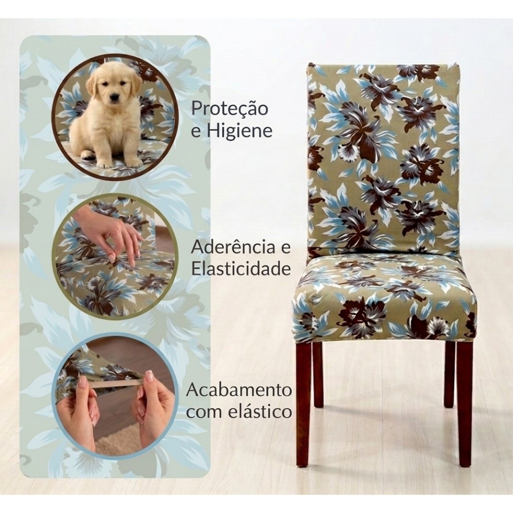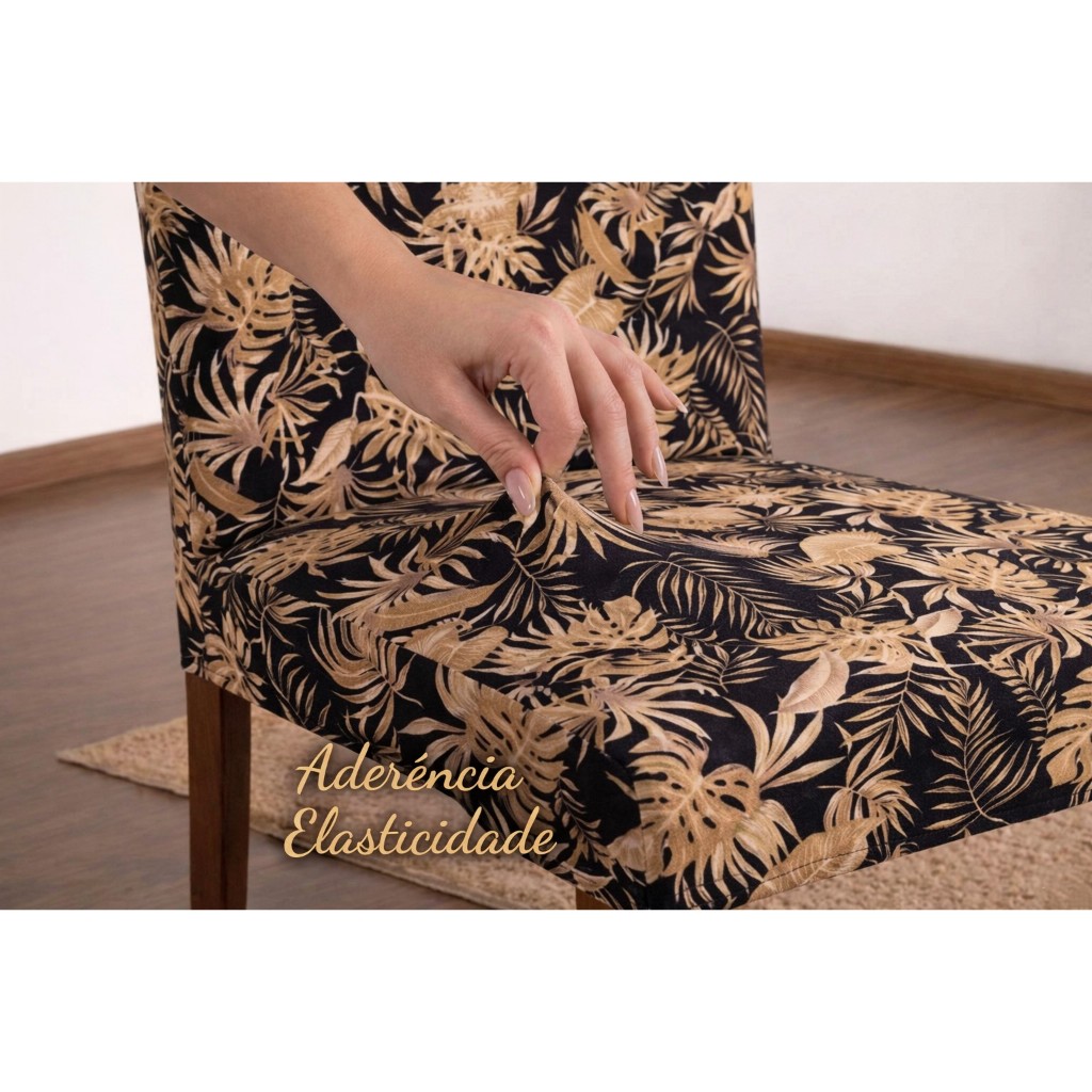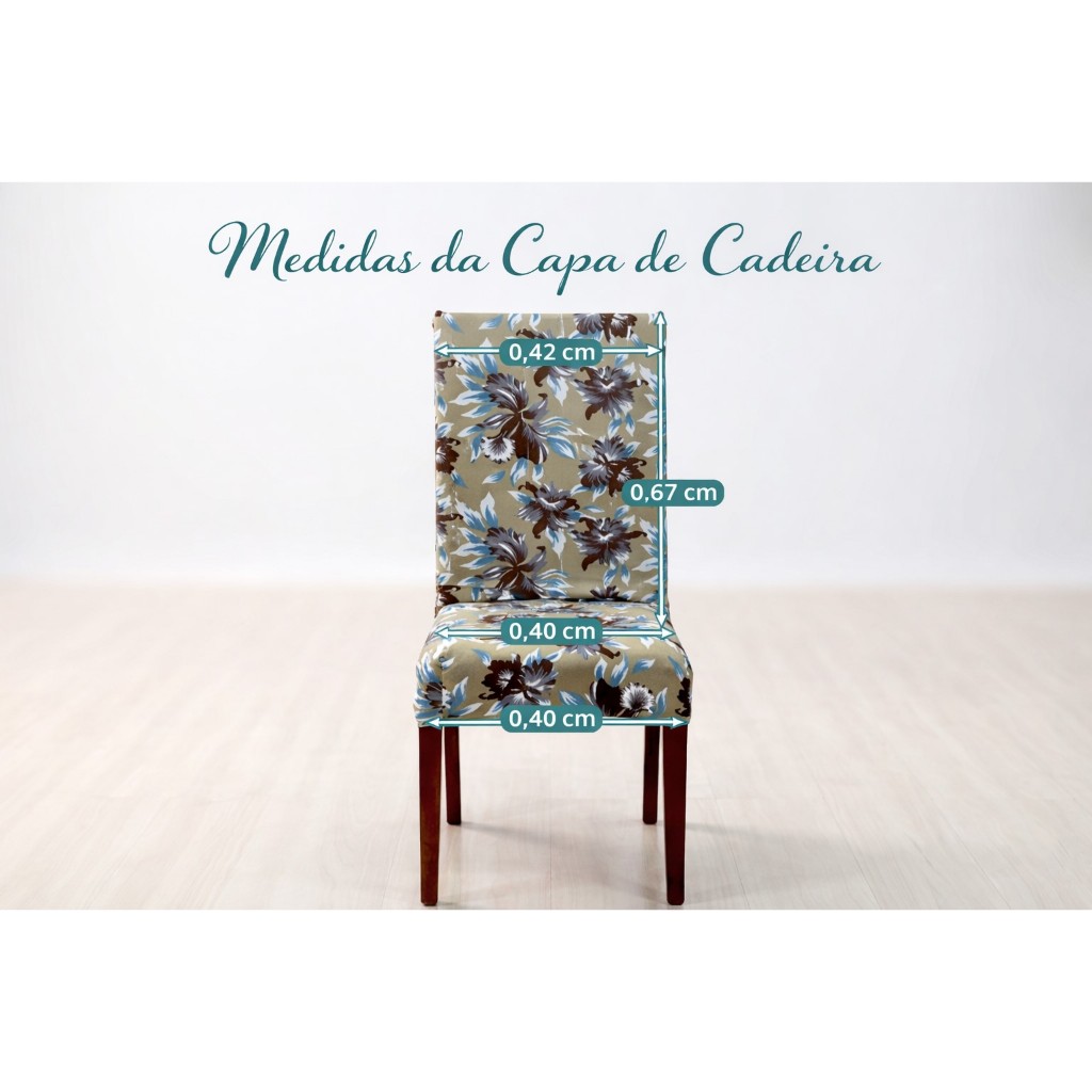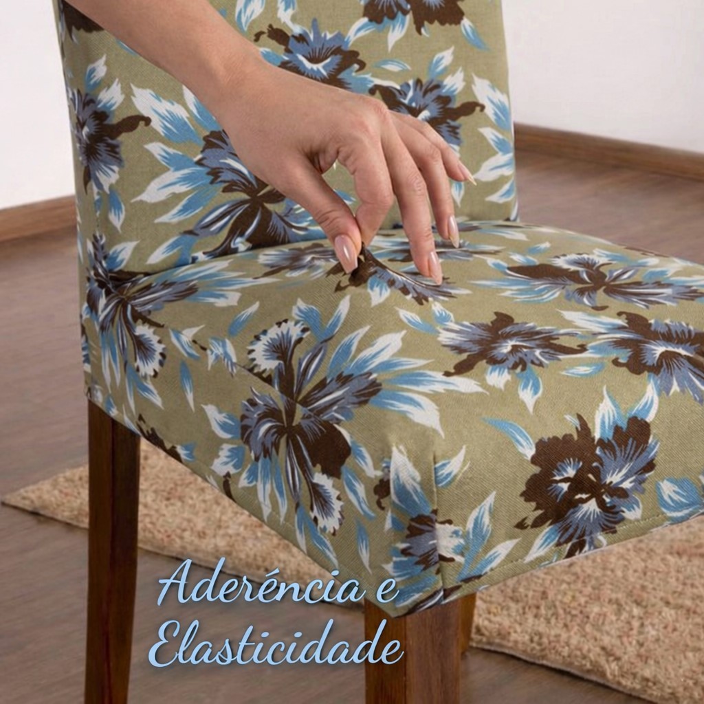 KIT 4 ou 6 Capa de Cadeira Floral Luxo Premium - Elásticada - Malha Gel Estampada ou Lisa
